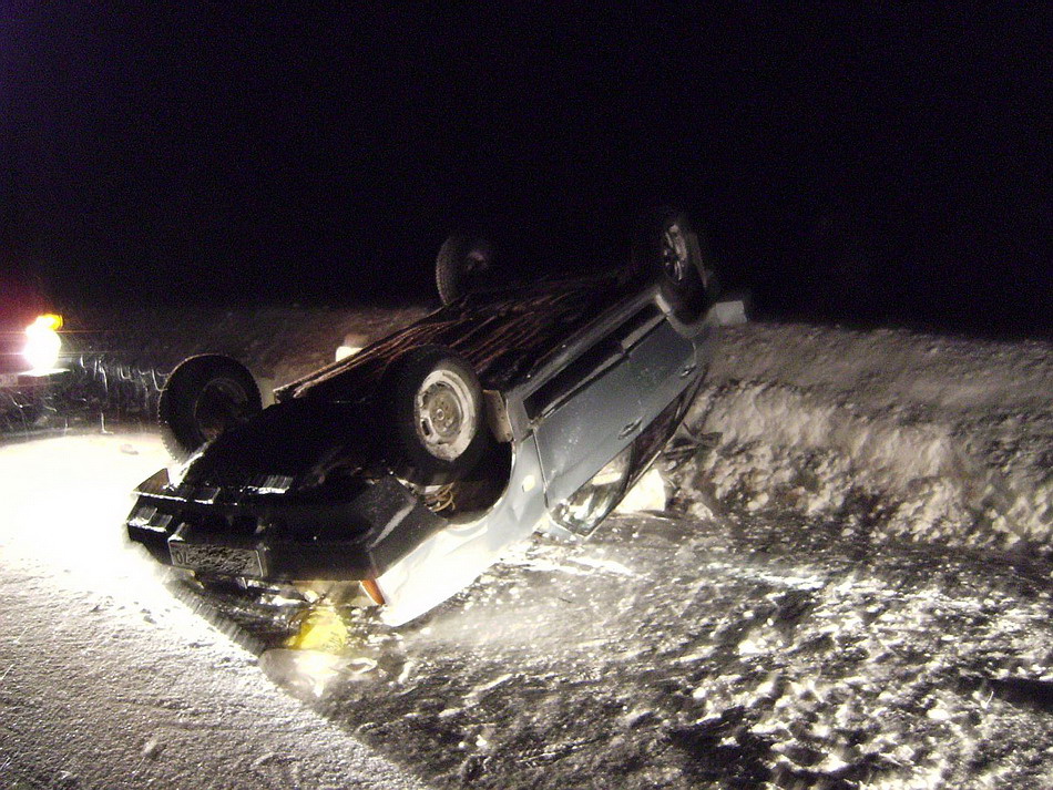 В Томской области ВАЗ опрокинулся после наезда на снежный вал, пострадали трое