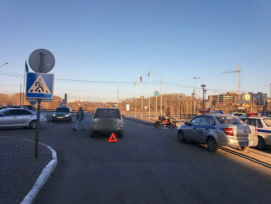 «Произошло столкновение двух транспортных средств. По предварительным данным, 20-летняя девушка-водитель мотоцикла КТМ-690, при движении по парковке торгового центра, не предоставила преимущество автомобилю Nissan X-Trail. После столкновения мотоцикл продолжил движение и совершил наезд на двух пешеходов, находящихся на тротуаре», — говорится в сообщении.