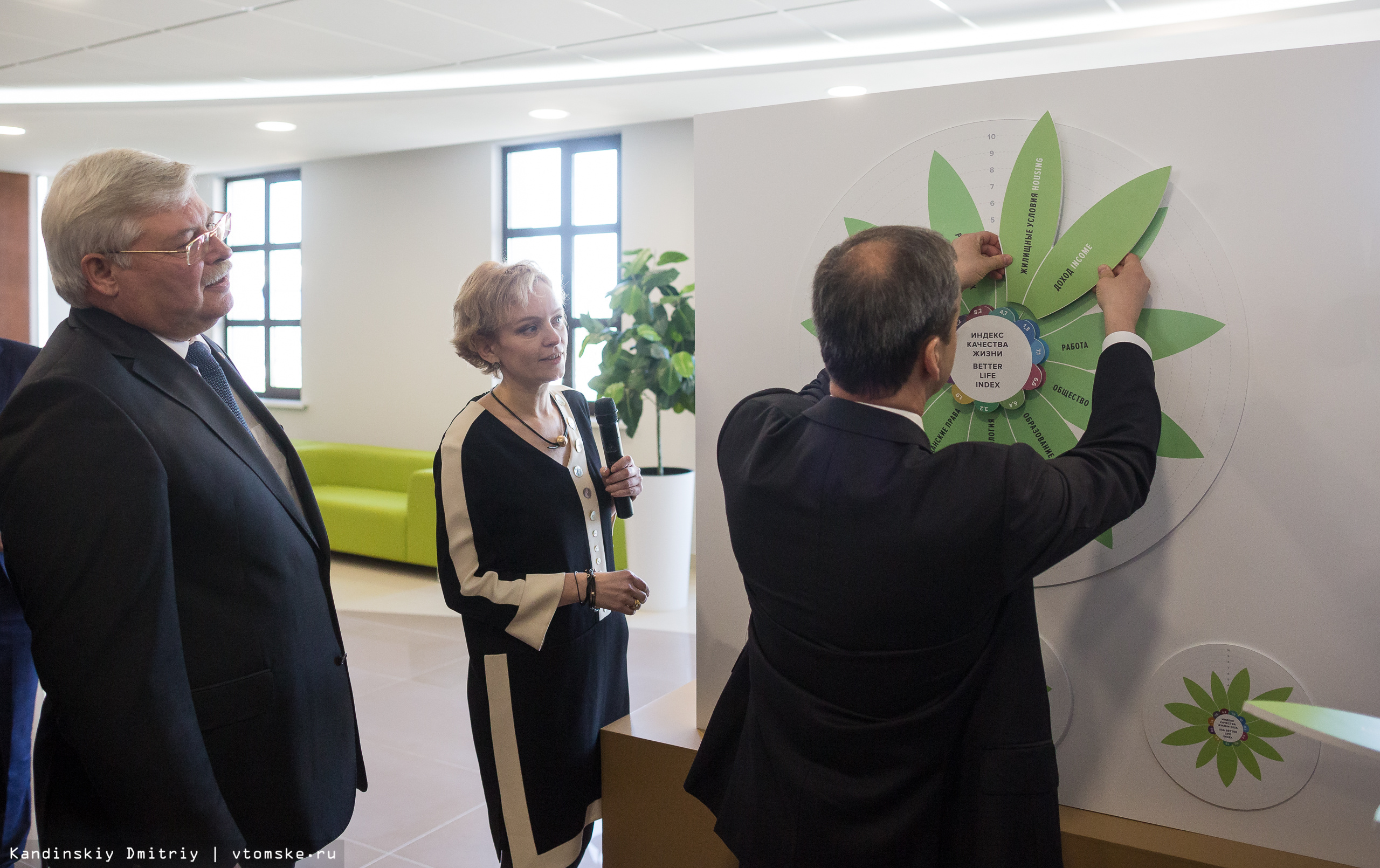 На открытии корпуса Эдуард Галажинский, Сергей Жвачкин и Аркадий Дворкович собрали «ромашку» — графическое воплощение индекса качества жизни. Они соединили несколько лепестков — параметров индекса — в единый цветок. В него вошли здоровье, образование, доход, экология, общество, удовлетворенность и другие параметры.