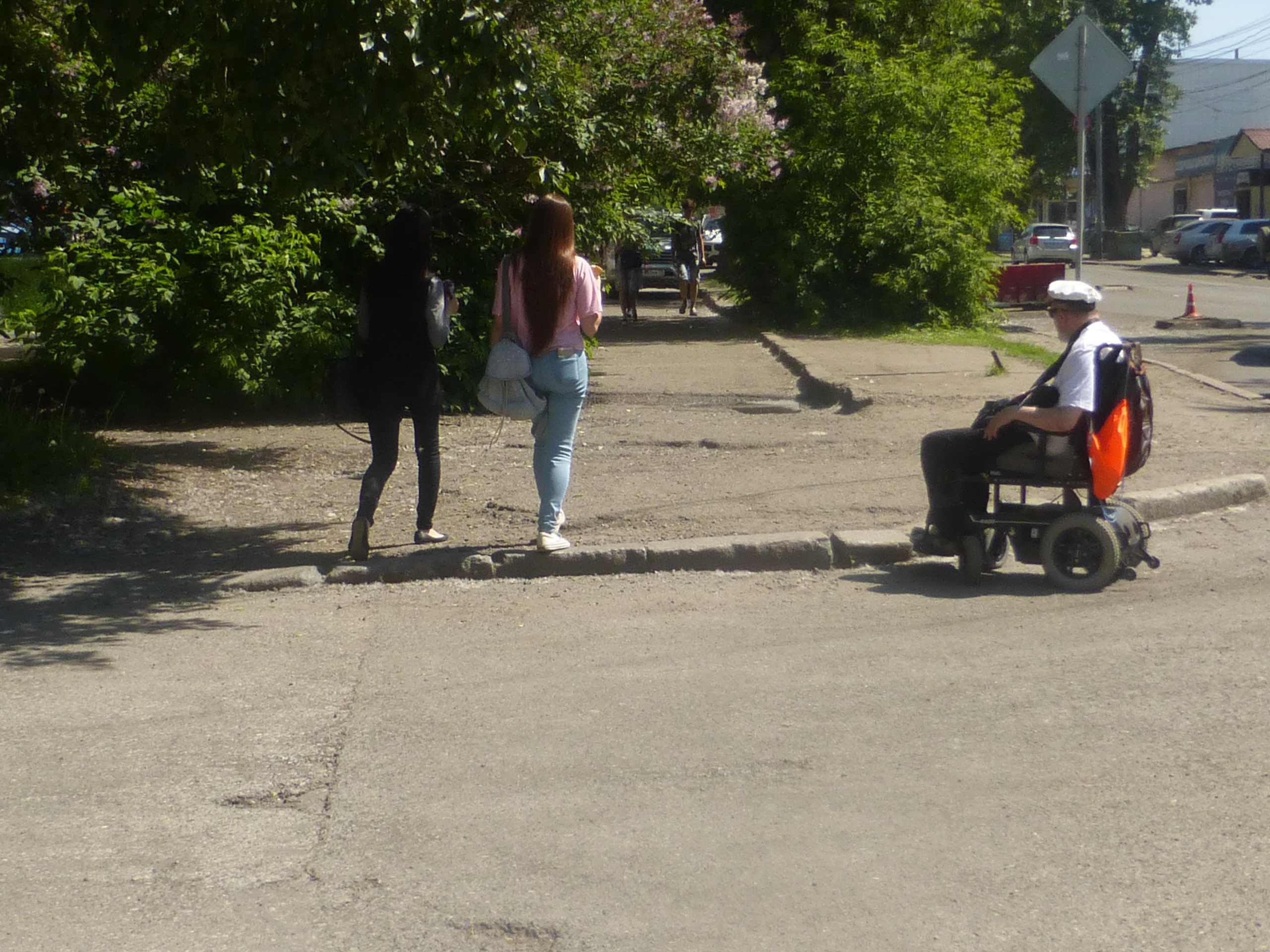 «Там не везде можно проехать, приходится искать пути, ездить вокруг, просить кого-то. Мы даже иногда боимся, когда начинают делать что-то новое или ремонтировать, что наделают нам новых преград. Например, по Ленина то мы и проехать не можем, постоянно попадаем в углубления для отвода воды во время дождей в тротуарах. Ее же можно сверху закрывать какой-то решеткой, а нам приходится прыгать буквально на коляске, колеса от такого долго не выдерживают <...> Мне, честно говоря, надоедает ездить по проезжей части, там иногда бывает тоже тяжеловато из-за ремонтных работ, наличия ям, потока машин. Мы понимаем, что водителям мы мешаем, но выбора особого нет — заедешь в одном месте на тротуар, доезжаешь до конца, а там — высокий бордюр. Приходится поворачивать и ехать назад, выезжать на проезжую часть», — резюмировал наш собеседник.
