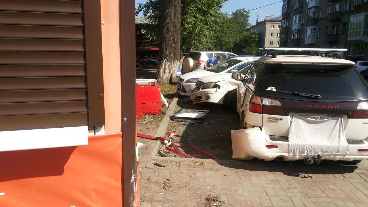 «В результате столкновения Subaru откинуло на стоящие на парковке автомобили Renault, Ford и Nissan, они получили повреждения. Также автомобилем Subaru был поврежден киоск», — пояснила представитель ГИБДД.