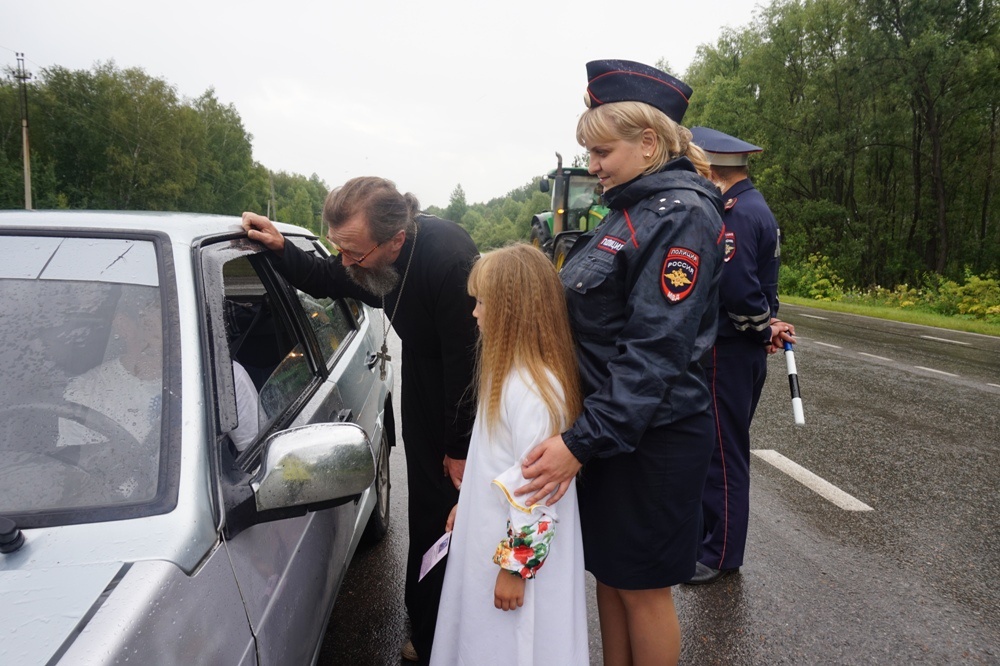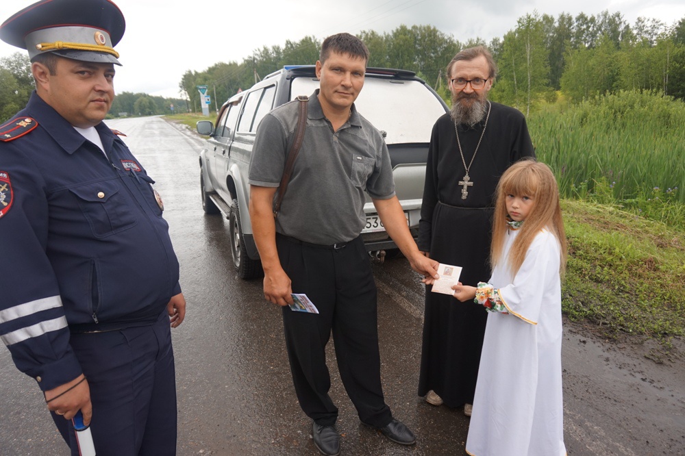 Священнослужитель призвал всех участников дорожного движения к взаимоуважению на дороге. Сотрудники ГИБДД вручали водителям листовки со статистическими данными о ДТП на территории района, а батюшка Олег — иконку с молитвой верующего водителя.