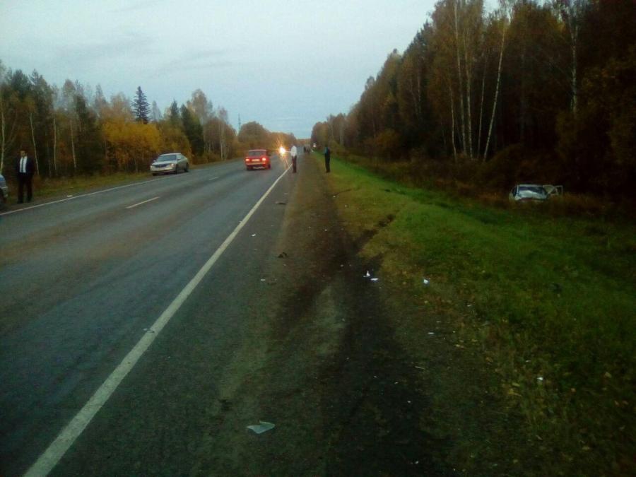 «На 75 километре дороги Томск — Колпашево автомобиль Renault Logan совершил столкновение с движущимся впереди ГАЗ-27851, затем со встречным Ford Mondeo. После этого Renault продолжил движение, съехал в кювет и опрокинулся», — говорится в сообщении.