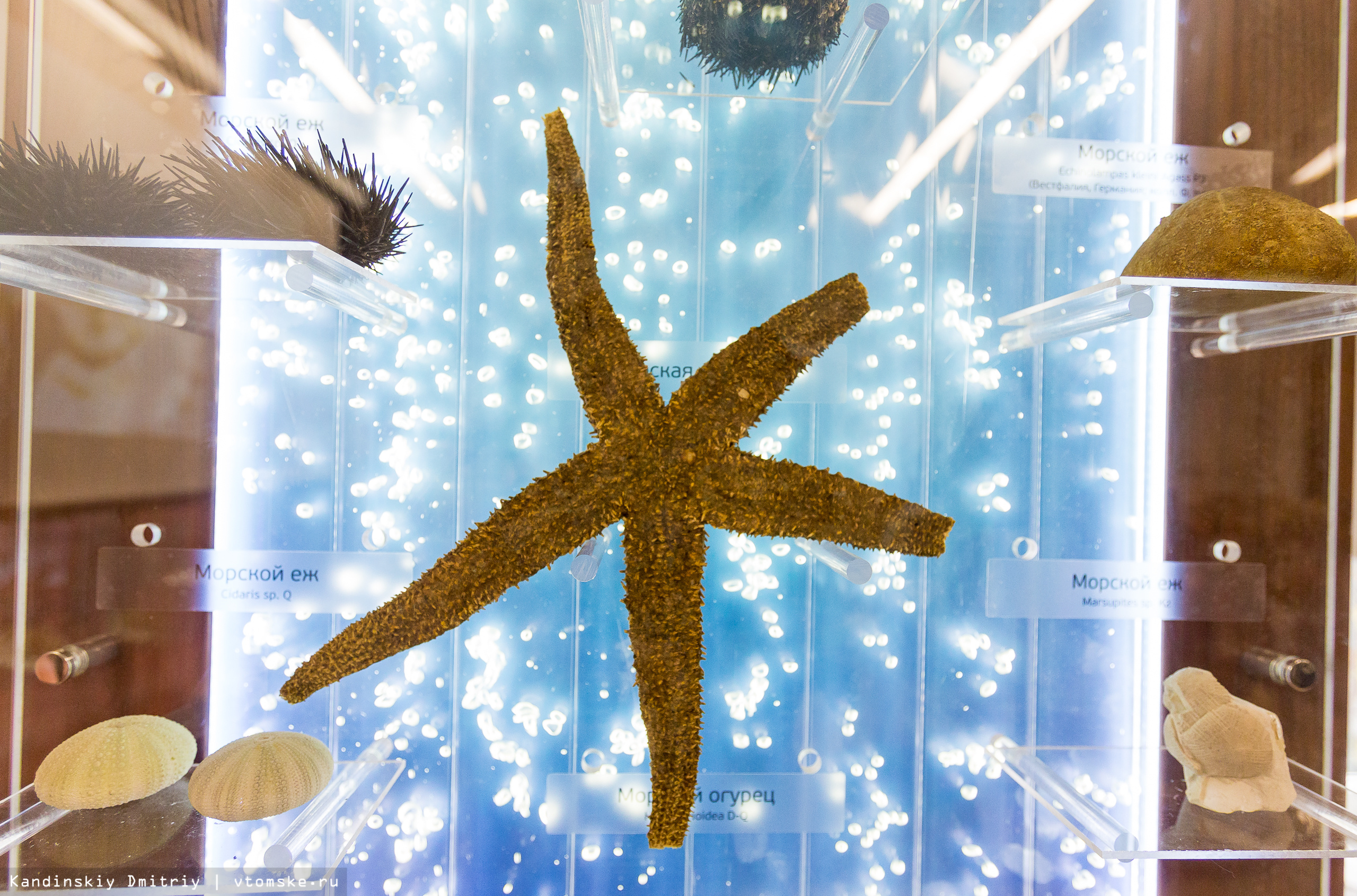 По ее словам, в музее сейчас представлено около 500 экспонатов, однако это не полная коллекция. Периодически экспонаты будут сменять друг друга. Среди экспозиции есть, в том числе находки, привезенные сотрудниками ТПУ, студентами. Так, этим летом студенты-геологи пополнили коллекцию музея ископаемыми археоциатами — это класс вымерших губок, они существовали на Земле около 530 миллионов лет назад. По данным политеха, студенты сделали свои находки во время практики в Хакасии.