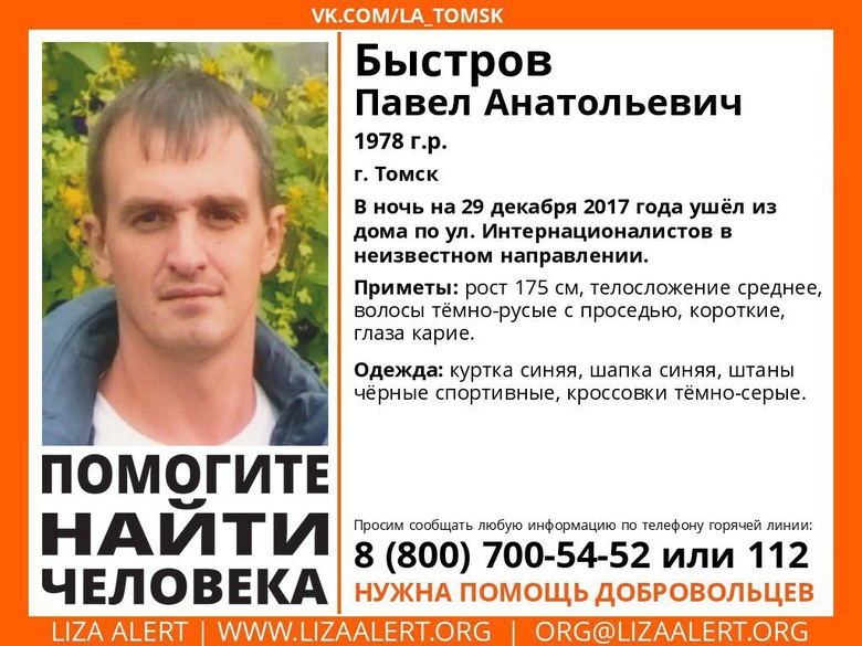 Ранее сообщалось, что 39-летний Павел Быстров в ночь на 29 декабря ушел из дома по улице Интернационалистов в неизвестном направлении.