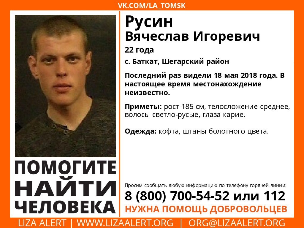 О пропаже Русина сообщил поисково-спасательный отряд «Лиза Алерт». По данным поисковиков, Вячеслава Русина видели последний раз 18 мая. С тех пор о его местонахождении ничего неизвестно.