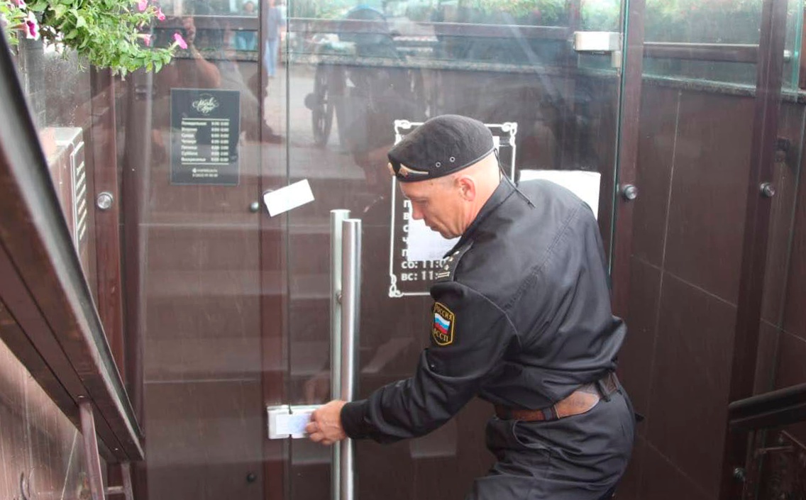 Сотрудники межрайонного отдела судебных приставов предупредили директора ресторана об административной ответственности, а затем опечатали кассовые аппараты, электрооборудование, холодильные установки и парадную дверь ресторана. При этом должнику предоставлена возможность для устранения выявленных нарушений. В случае досрочного устранения нарушений приостановление деятельности может быть отменено по решению суда в более короткий срок.