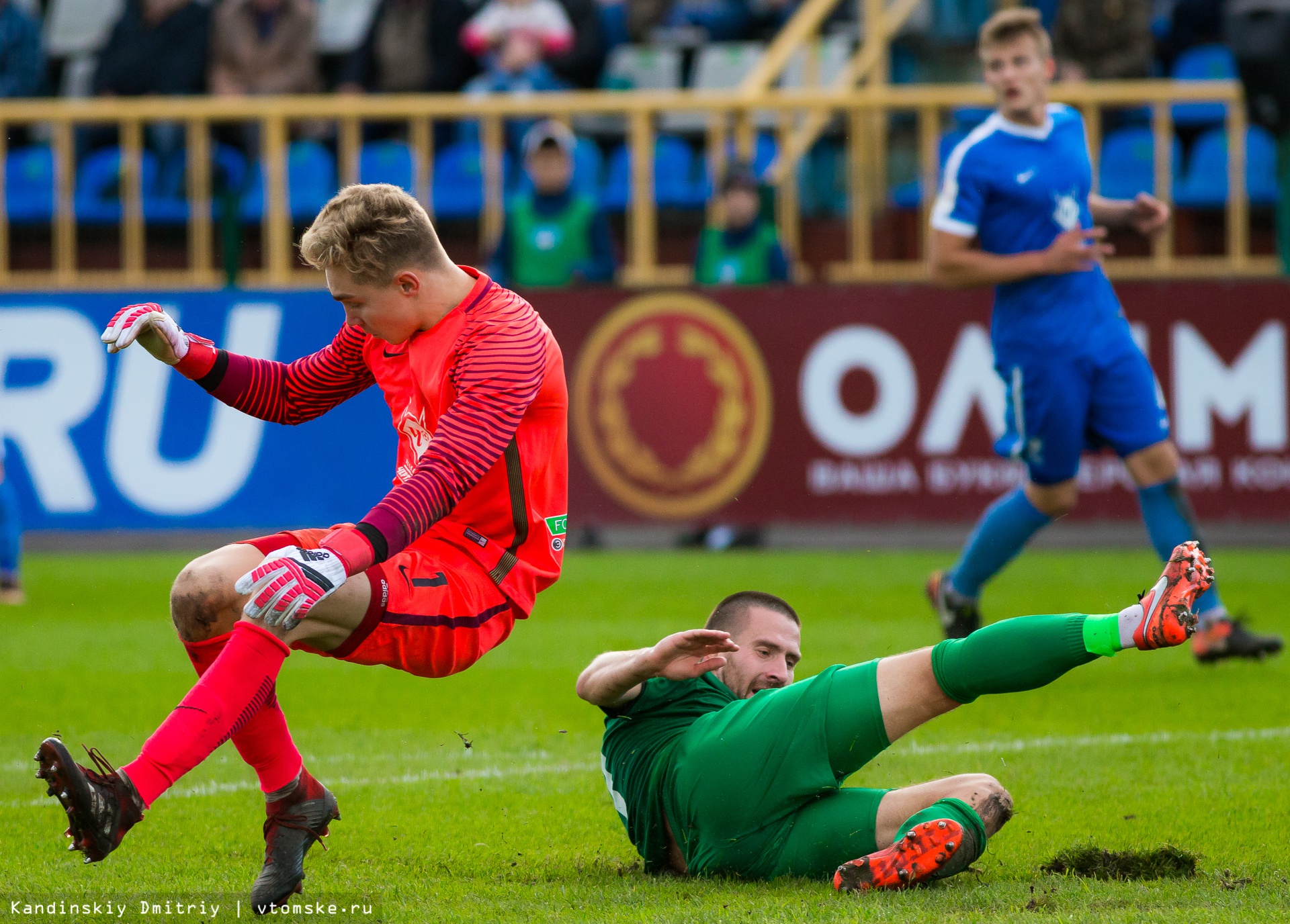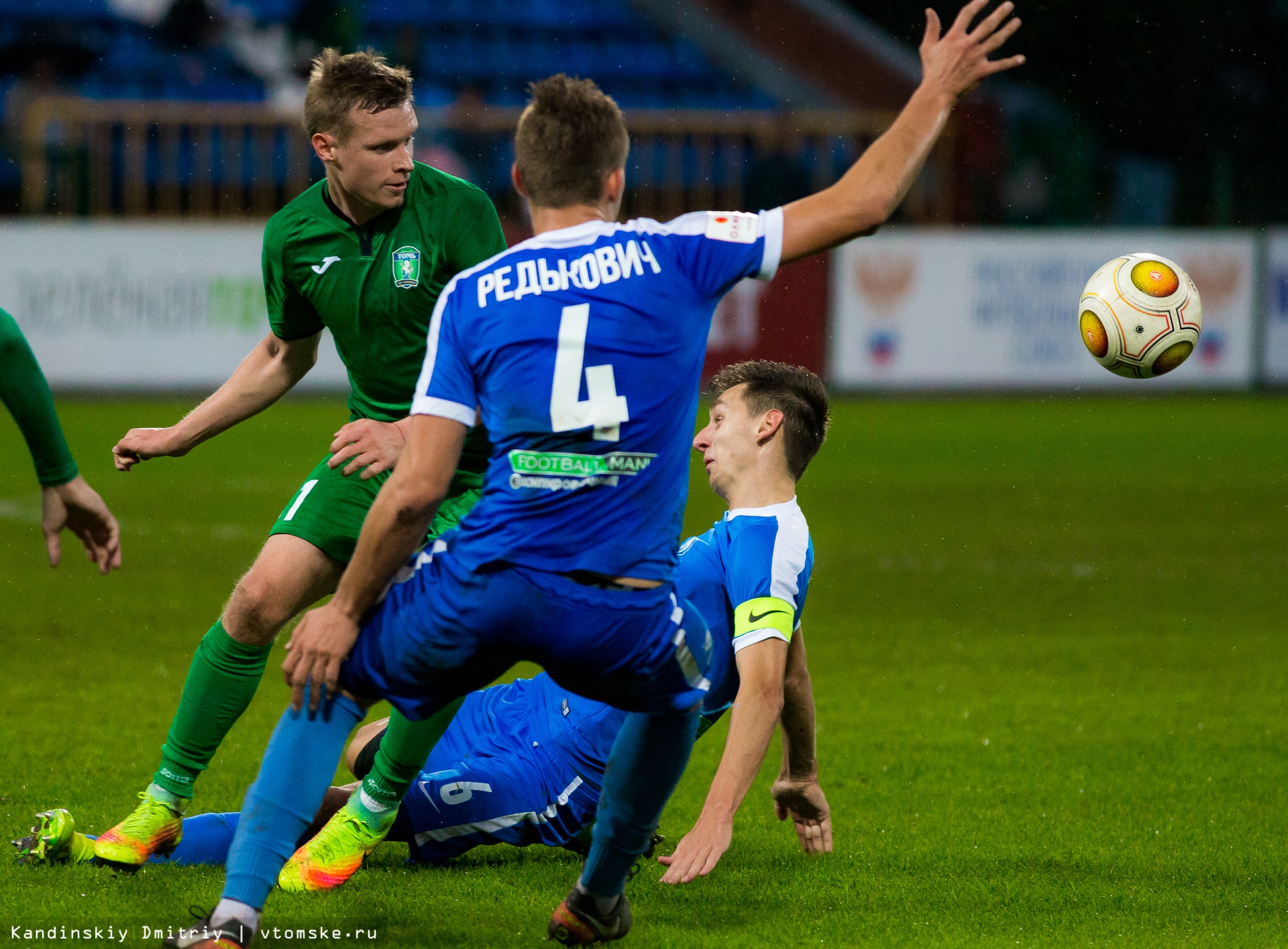 Футболисты томской команды открыли счет уже в начале матча. На шестой минуте, после удара со штрафного в исполнении Калинского, вратарь гостей выпустил мяч из рук и набежавший Кузьмичев отправил его в сетку.