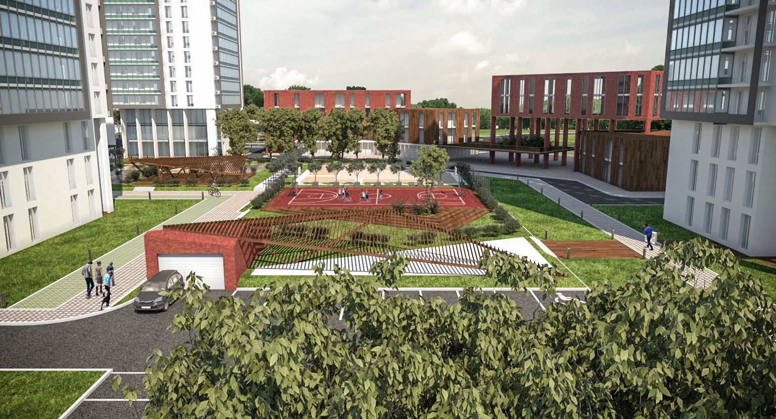 По его словам, общая жилая площадь комплекса составляет 37 тысяч квадратных метров. Включая элементы обслуживания и подземные парковки она составит 42 тысячи «квадратов». Нормы озеленения дворовых территорий, согласно регламентам, составляют 20 %, а в данном жилом комплексе озеленение будет составлять 40 % от дворовой территории.