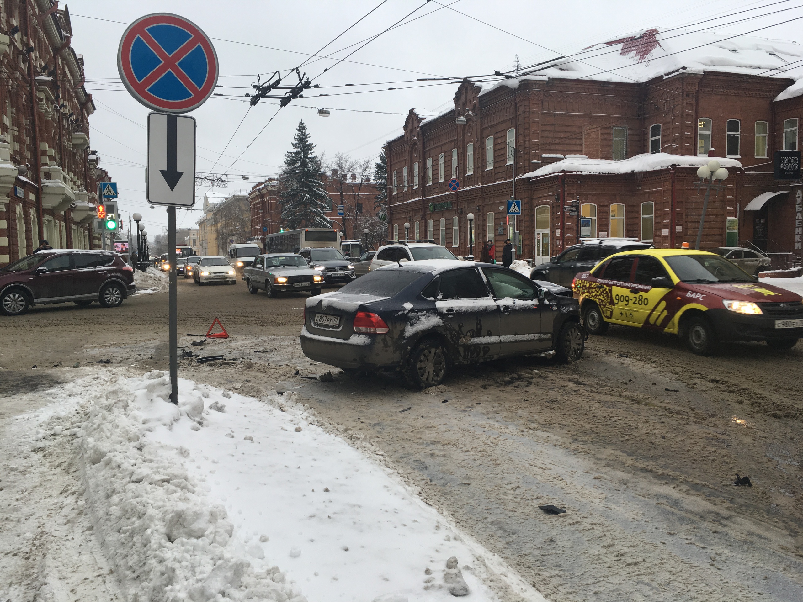 По словам нашего корреспондента, в районе главного корпуса ТГУ сломался маршрутный автобус. Также на пересечении проспектов Ленина и Фрунзе произошло дорожно-транспортное происшествие.