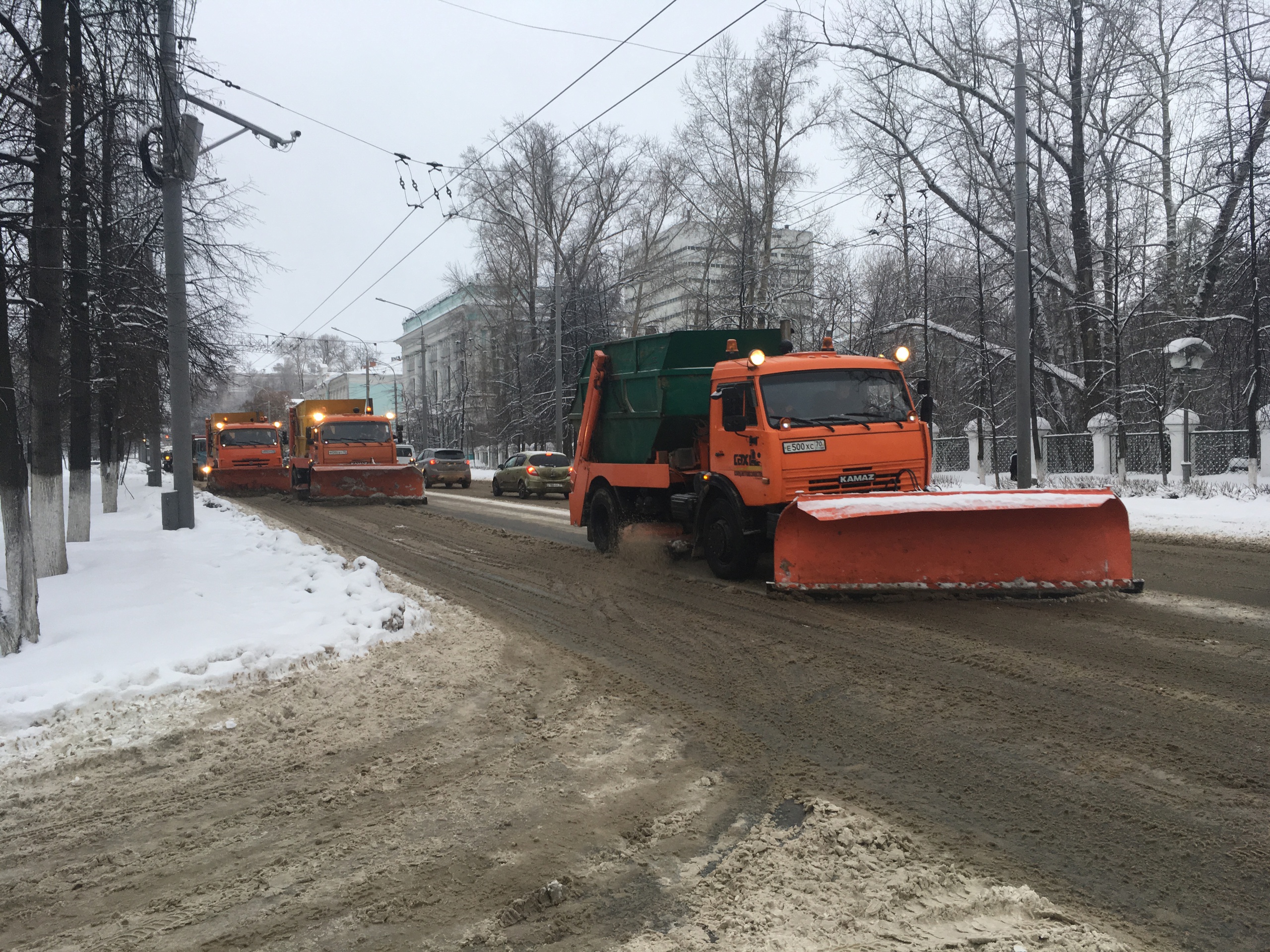 Наиболее сильные пробки фиксируются также на Коларовском тракте, улицах Красноармейской, Киевской, Усова, Крылова, Елизаровых, проспектах Кирова и Комсомольском, Мира, улицах 1-й Рабочей, Рабочей.