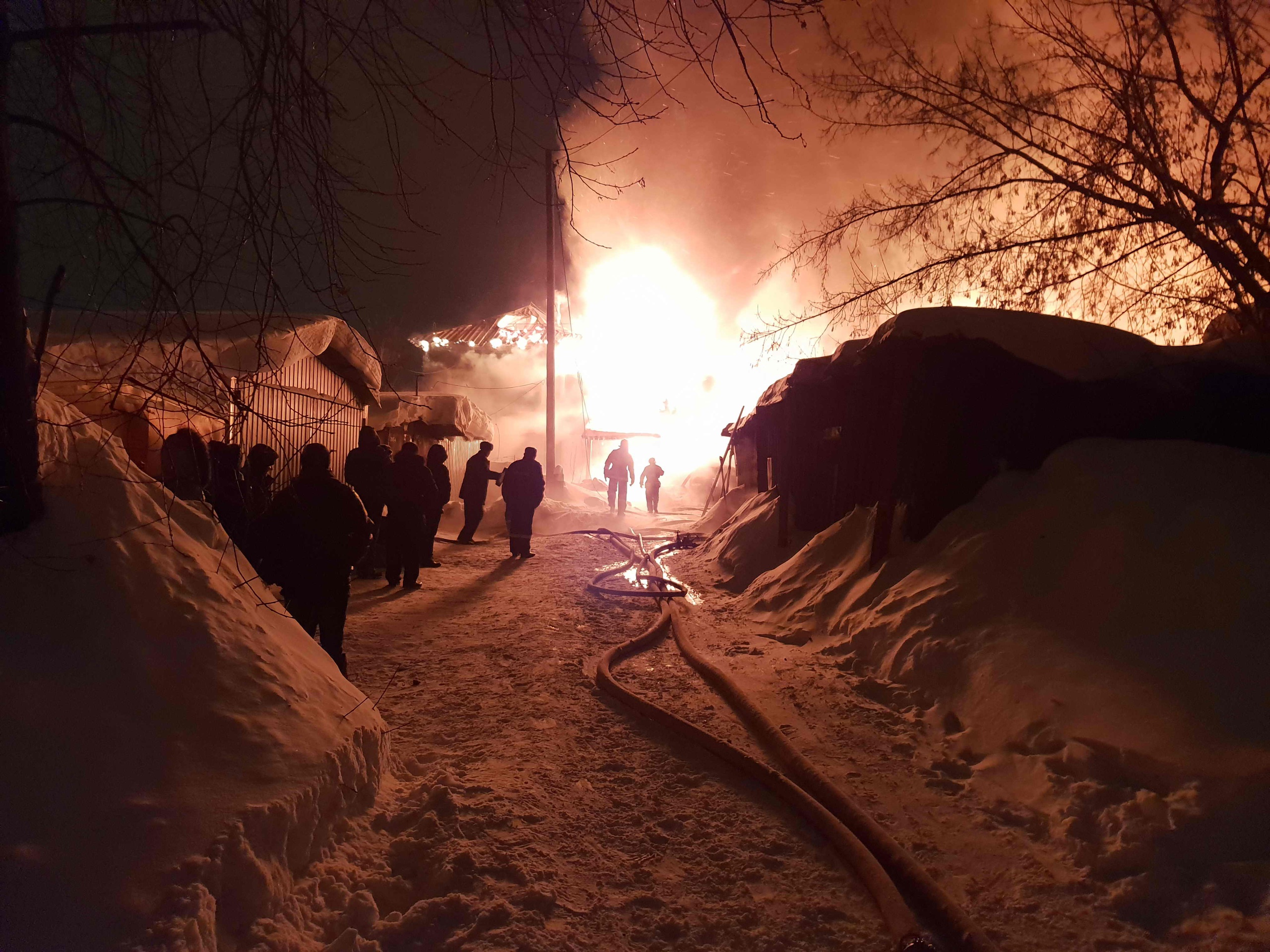 Сообщение о пожаре в двухэтажном двухподъездном деревянном жилом доме на Ново-Киевской поступило в пожарно-спасательную службу МЧС России в 04:41 28 января.