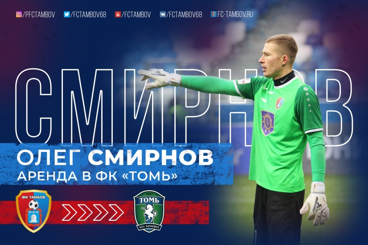 «Голкипер футбольного клуба «Тамбов» Олег Смирнов вторую часть текущего сезона Олимп-Первенства России проведет в аренде в «Томи». Между клубами уже достигнуты все необходимые договоренности, и в скором времени игрок будет закреплен за томской командой», — говорится в сообщении.