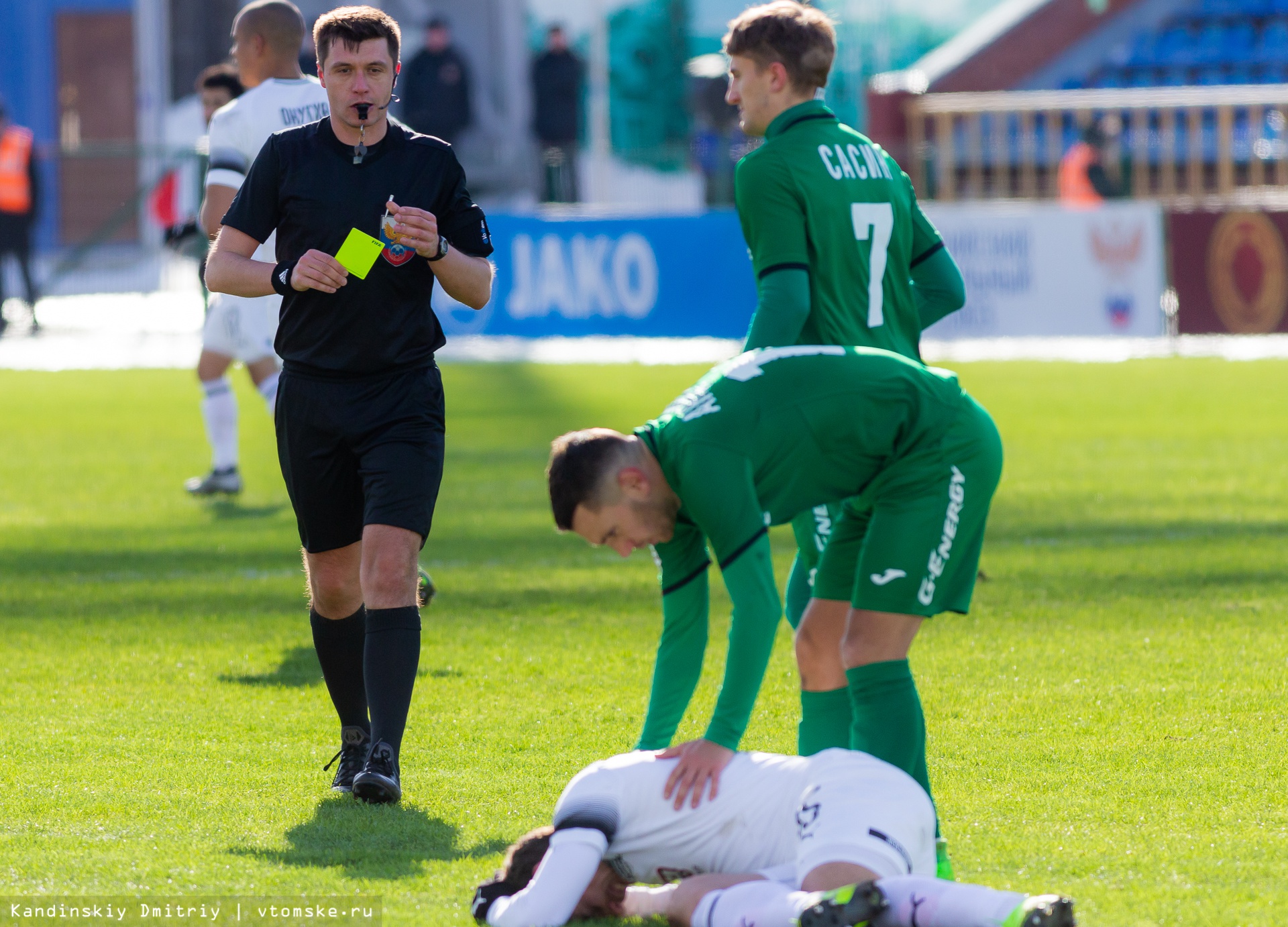 Спустя пять минут главному тренеру «Томи» Василию Баскакову пришлось вносить коррективы в игру своей команды. Из-за травмы покинул поле Гасилин. Его заменил Сасин. «Томь» перестроилась на игру в одного форварда и по истечении первого тайма больше не создала опасных моментов.