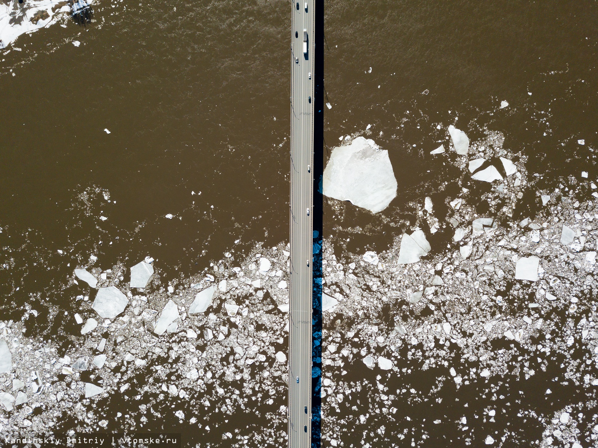 Голова ледохода на реке Томи подошла к Томску около 14:00 в воскресенье, 7 апреля, переливов дорог и подтоплений нет. В настоящее время ледовые массы на Томи остановили свое движение в районе центра Томска.