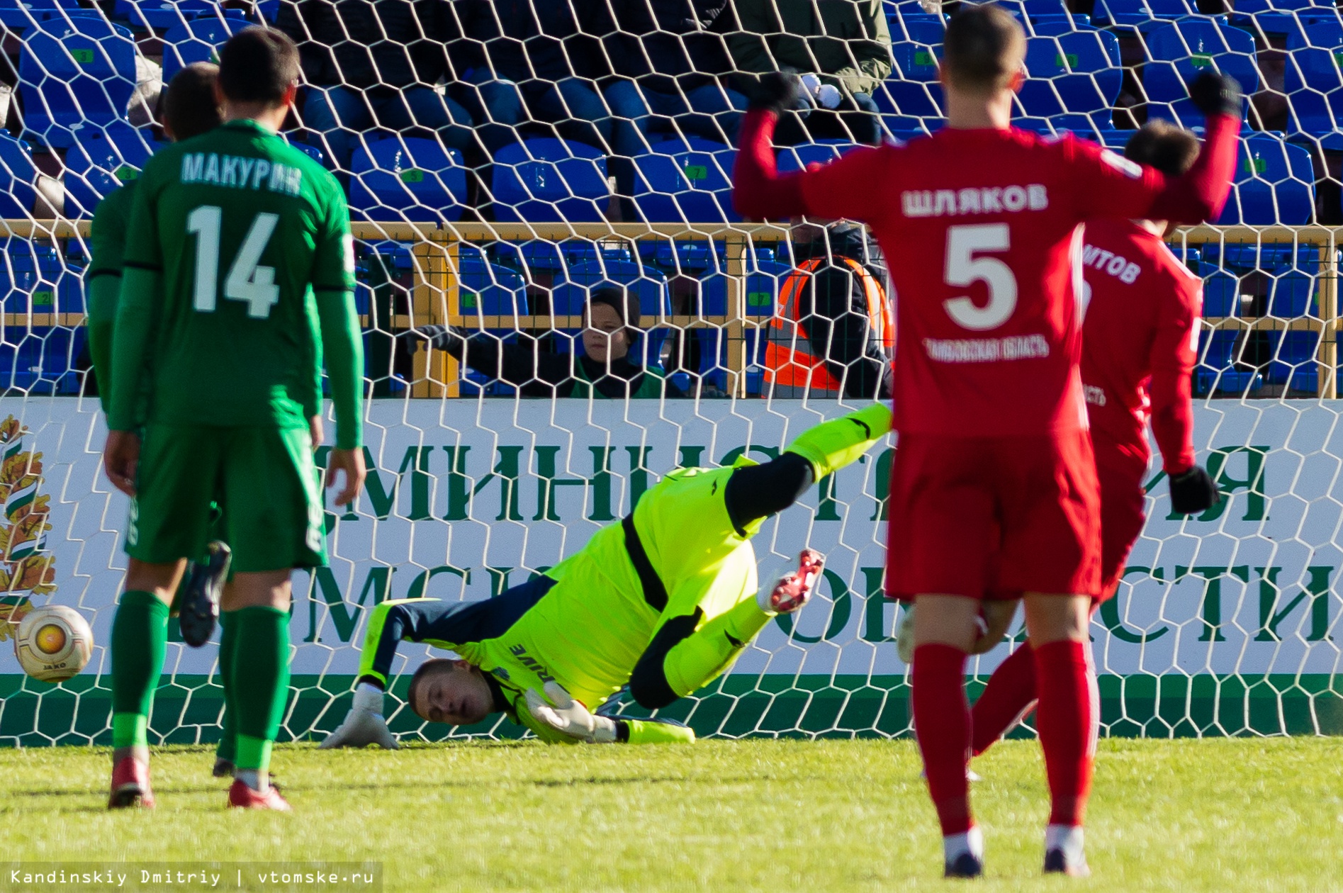«Томь» сыграла вничью с лидером чемпионата «Тамбовом». Матч завершился со счетом 1:1.