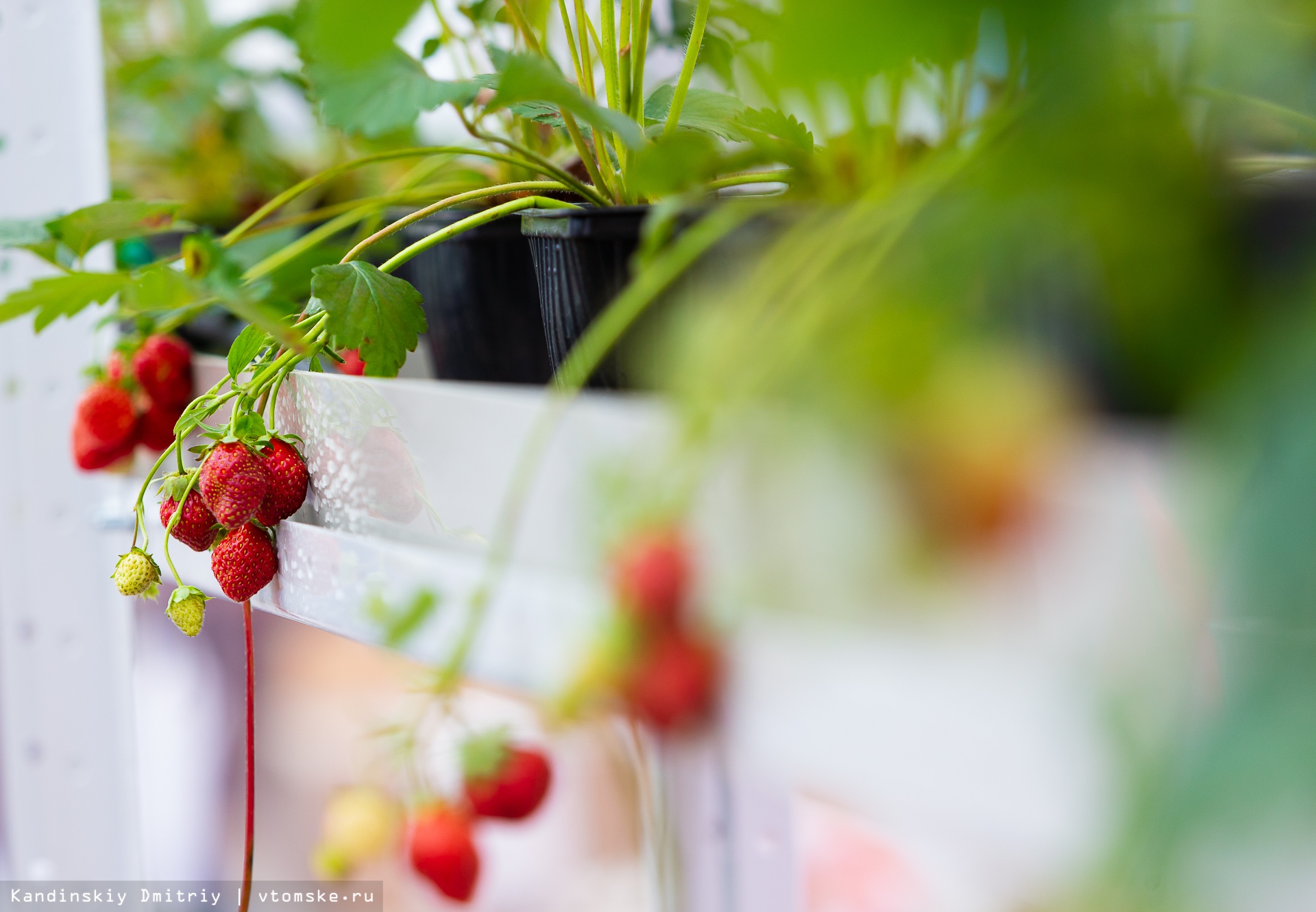 По соседству с плантацией огурцов в «умной» теплице разместились стеллажи, на которых выращивают клубнику. Также здесь можно высадить салат и мелкую зелень, например, базилик. Проектом занимается Сергей Туранов, ассистент отделения материаловедения Инженерной школы новых производственных технологий ТПУ. Еще до начала производства он два года выращивал ягоду у себя в кабинете. «Грядка» разместилась в шкафу под светодиодами.