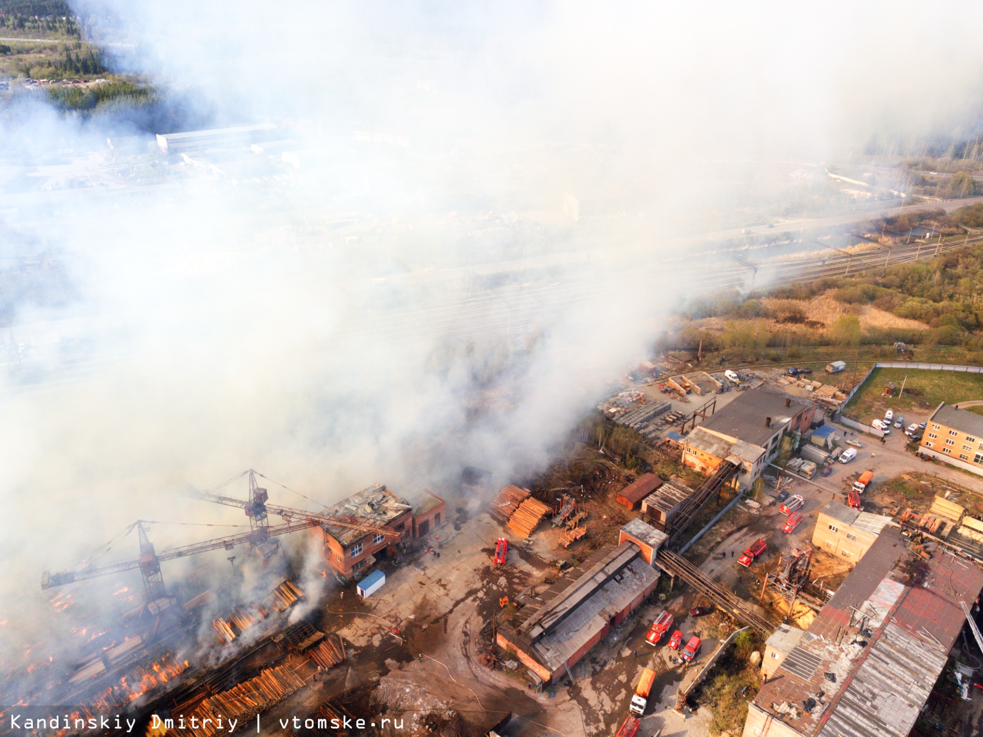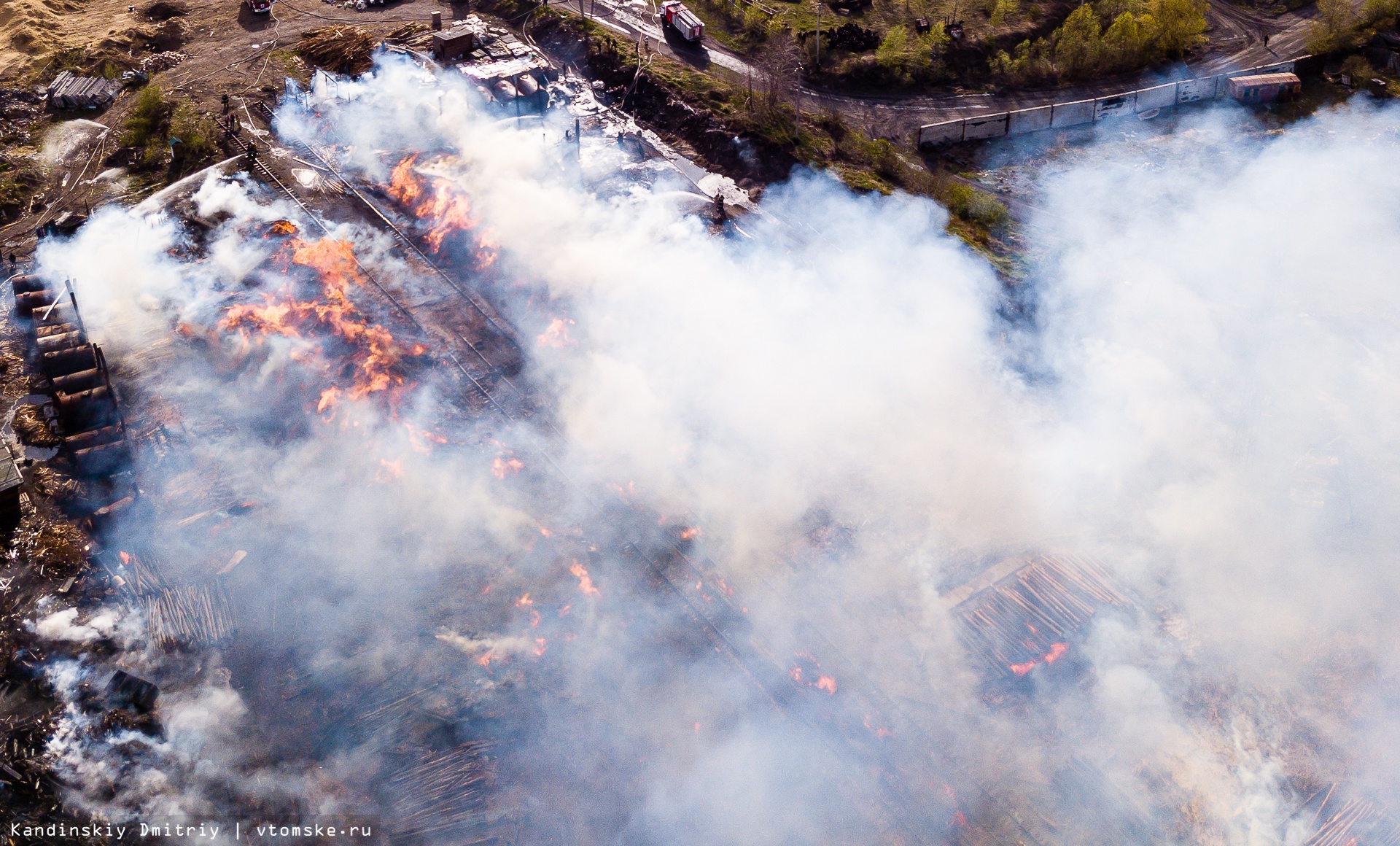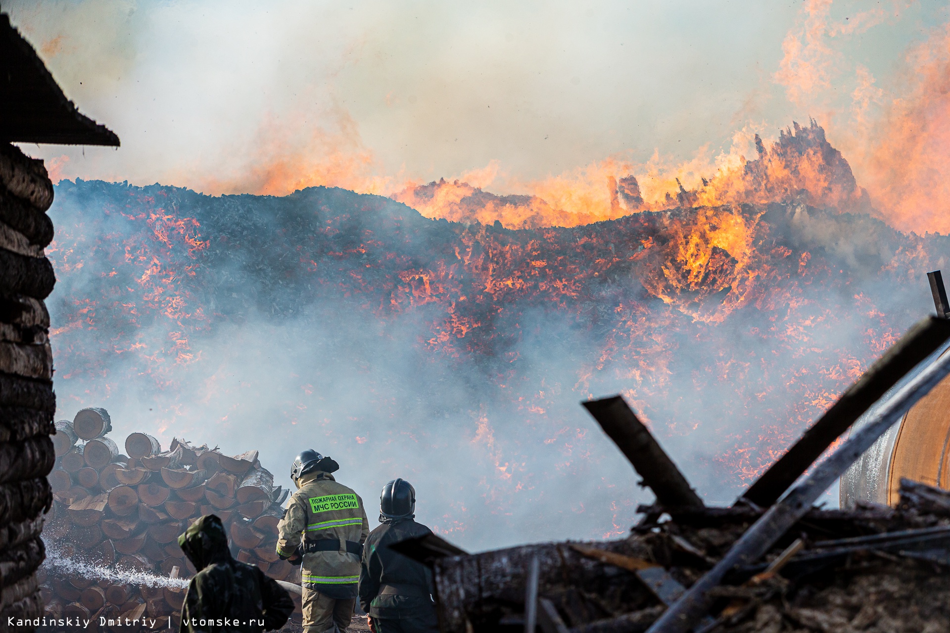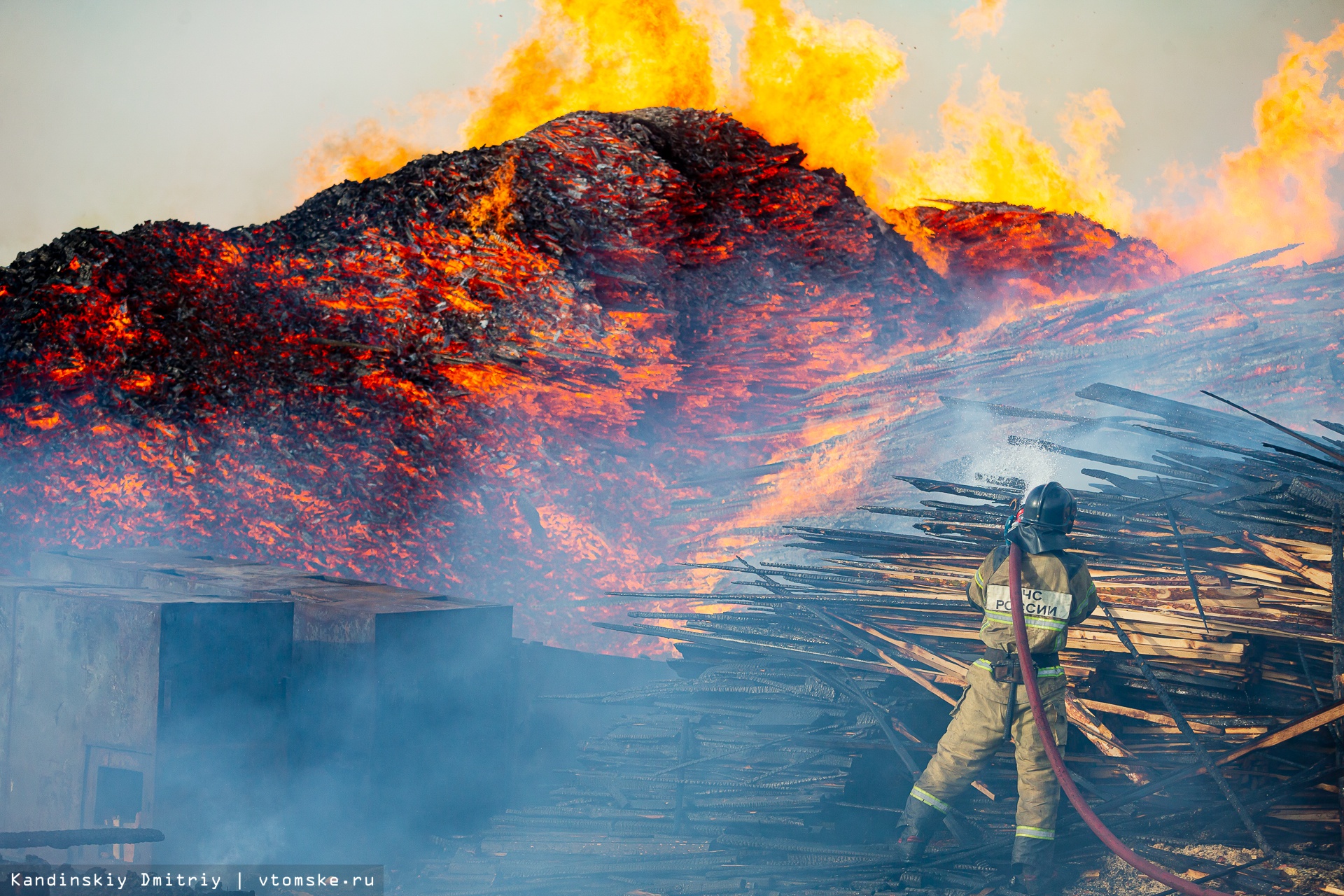 Все в огне: пожар разбушевался на складе пиломатериалов в Томске