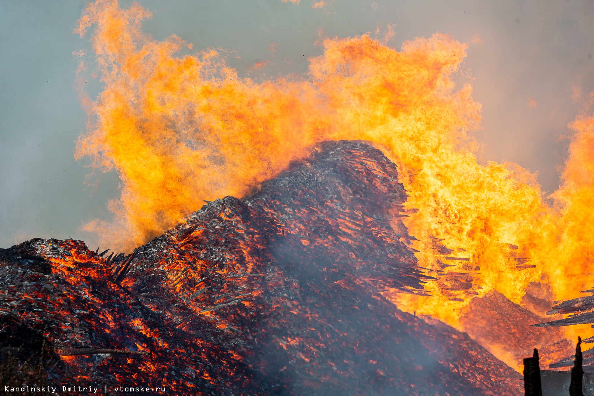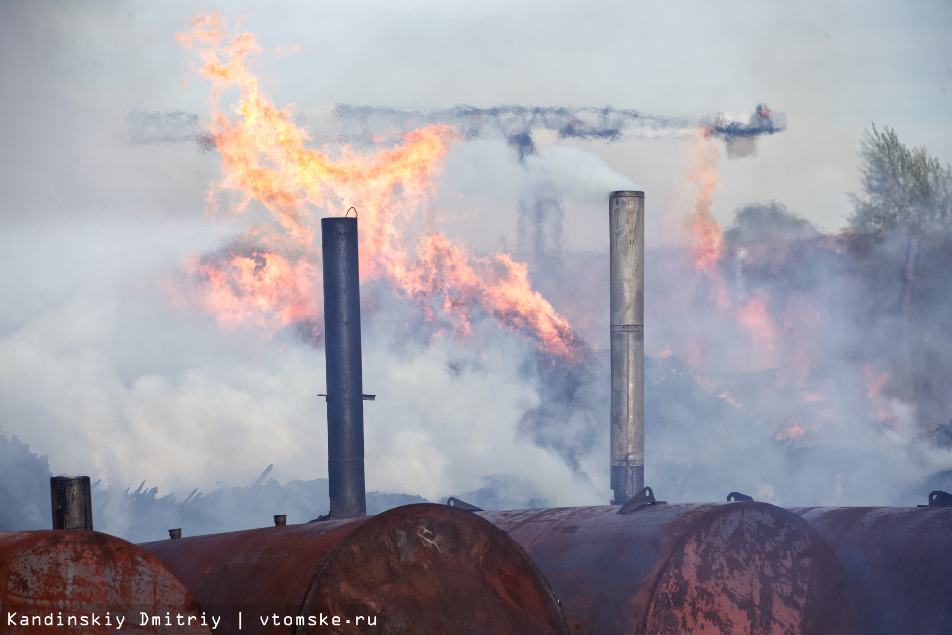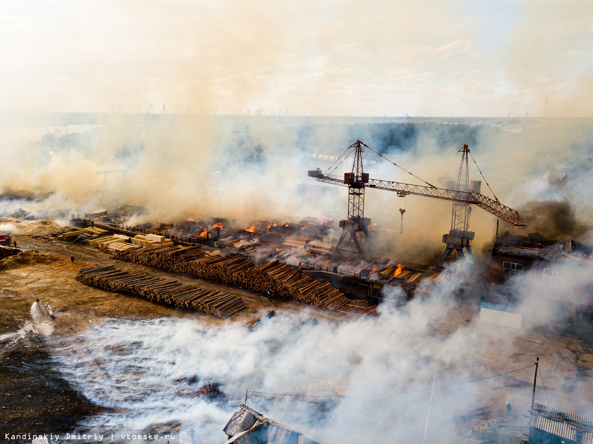 Все в огне: пожар разбушевался на складе пиломатериалов в Томске
