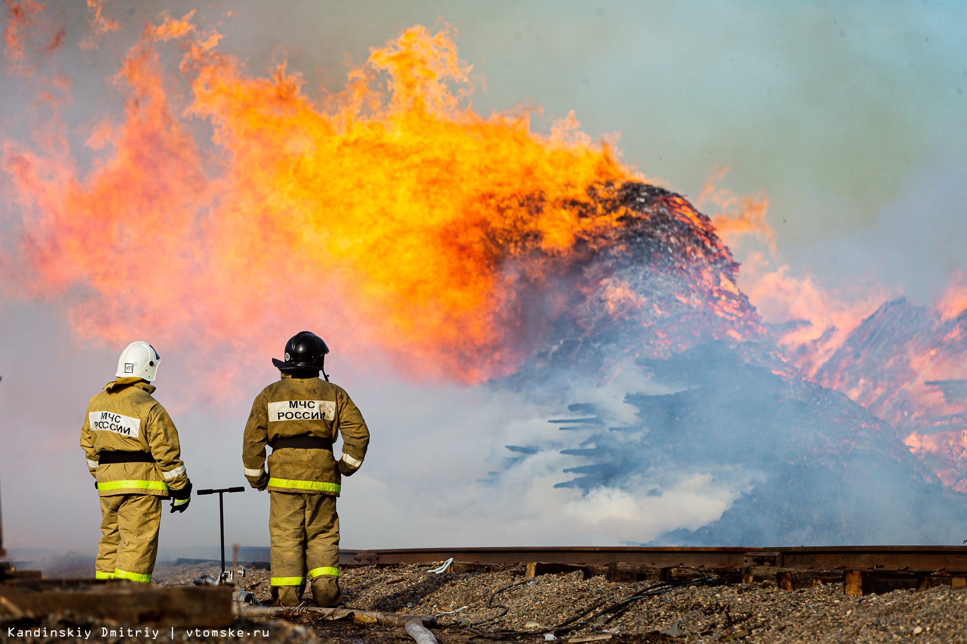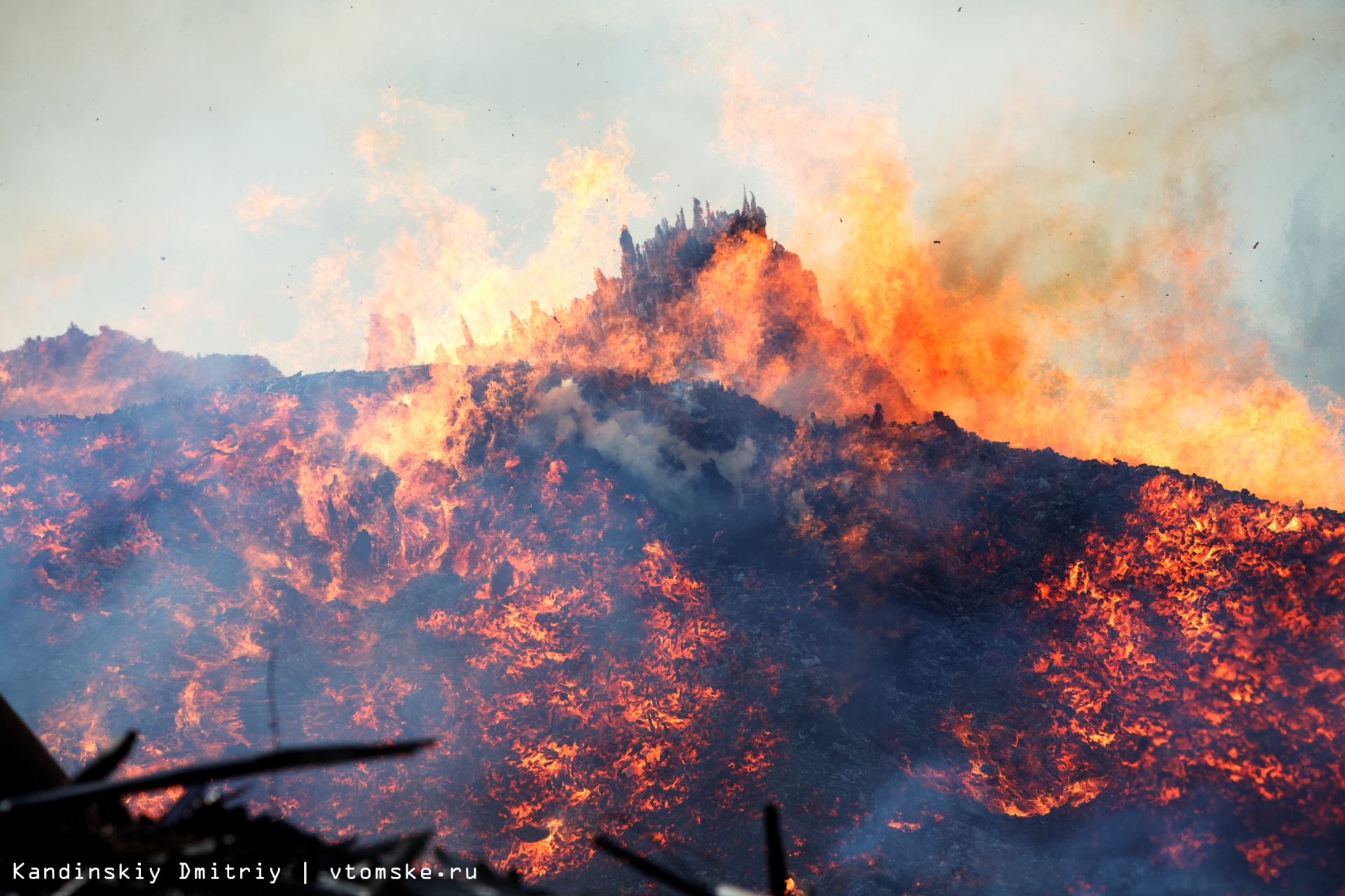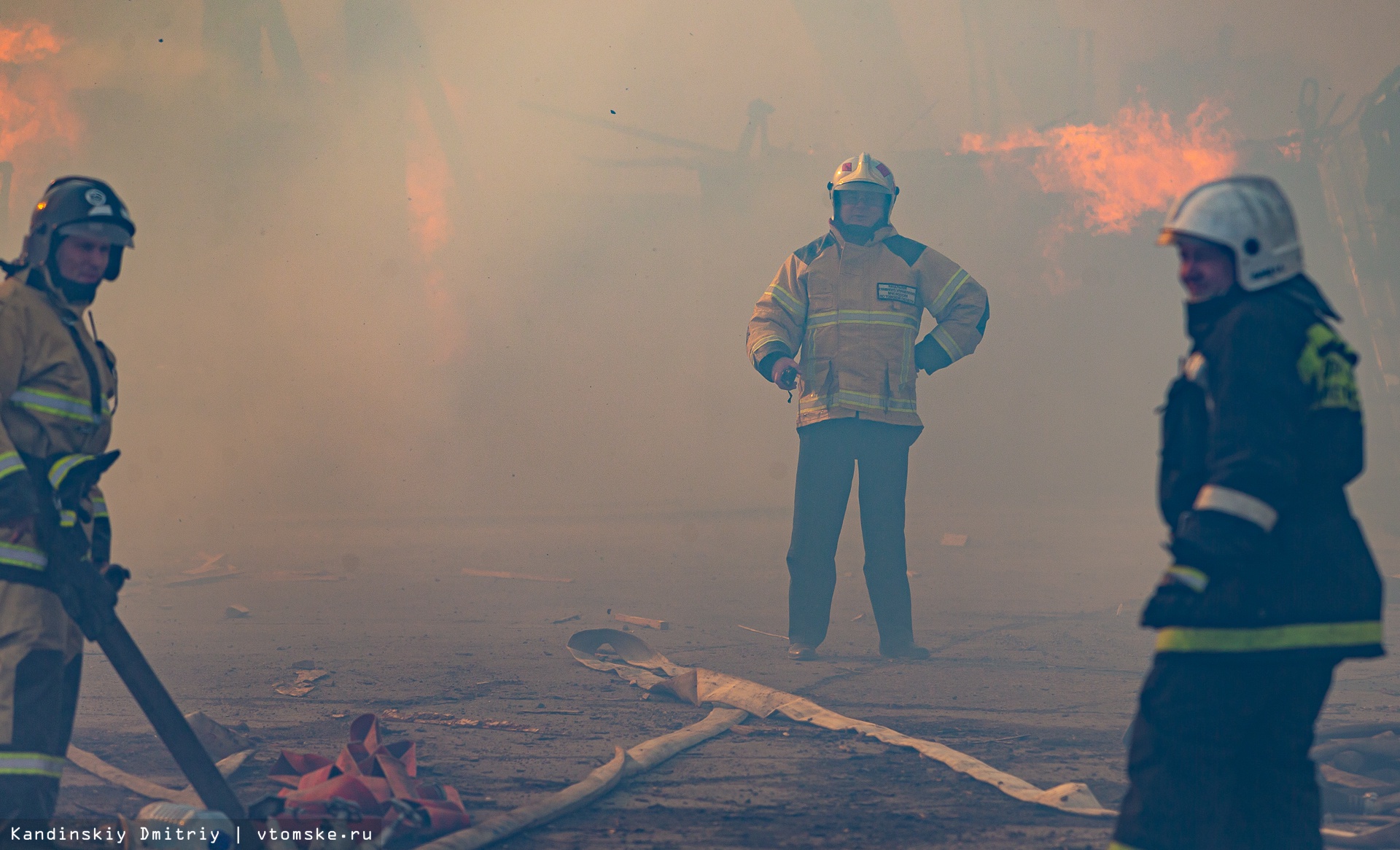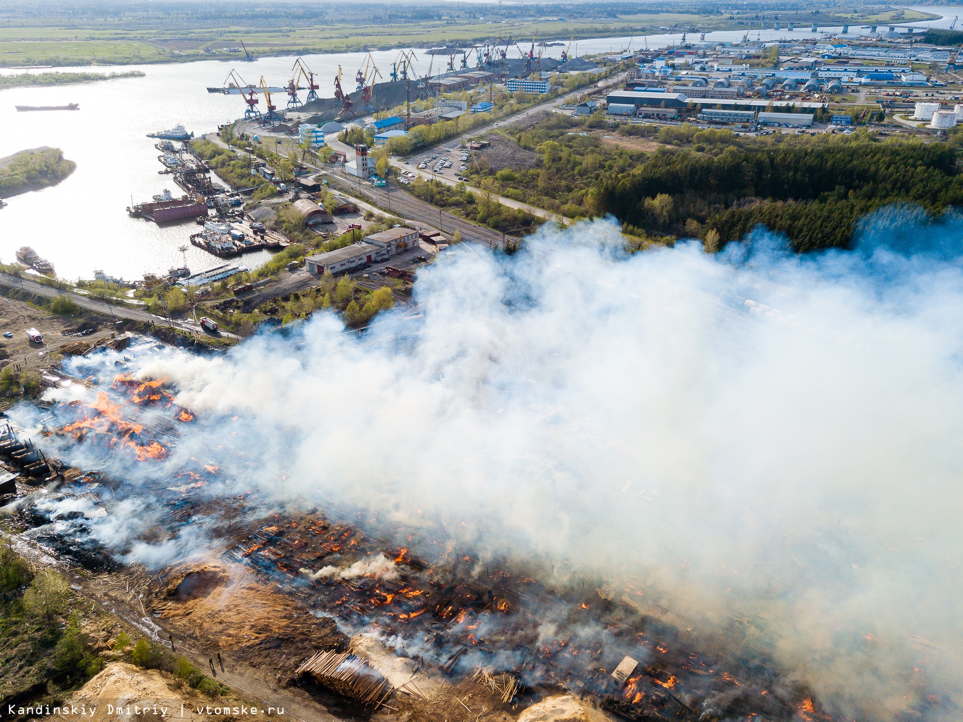 Все в огне: пожар разбушевался на складе пиломатериалов в Томске