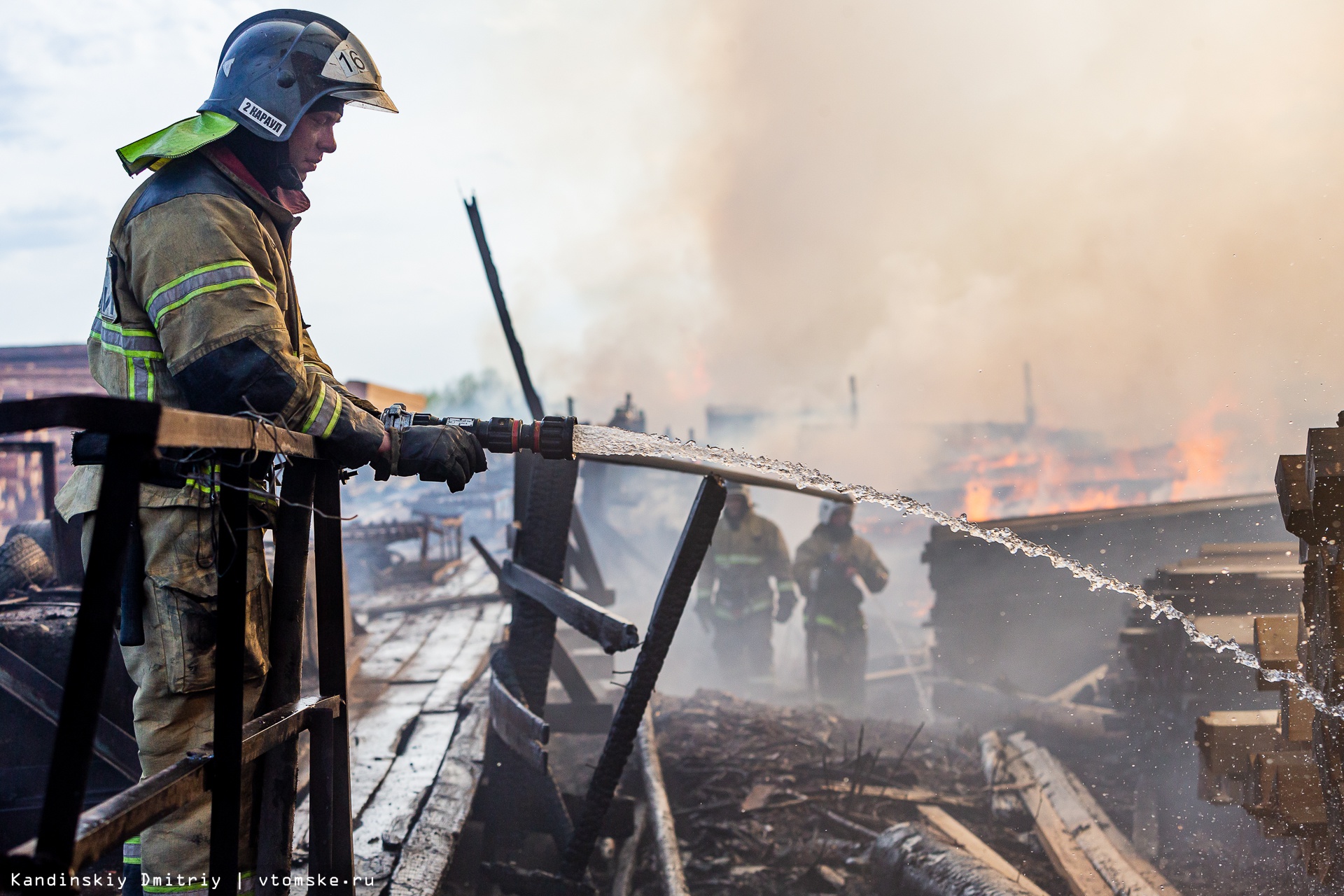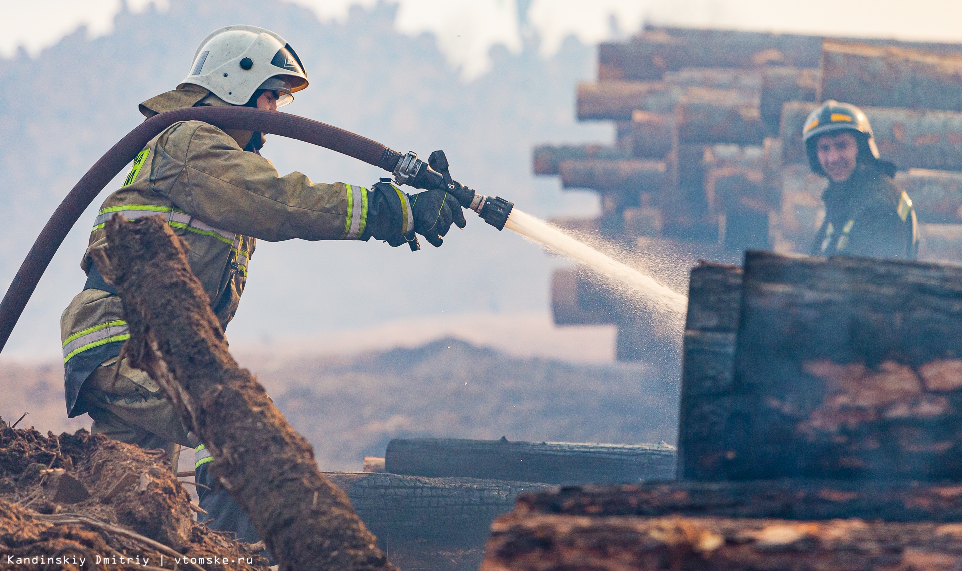 Четыре часа тушат пожарные загоревшиеся пиломатериалы на окраине Томска