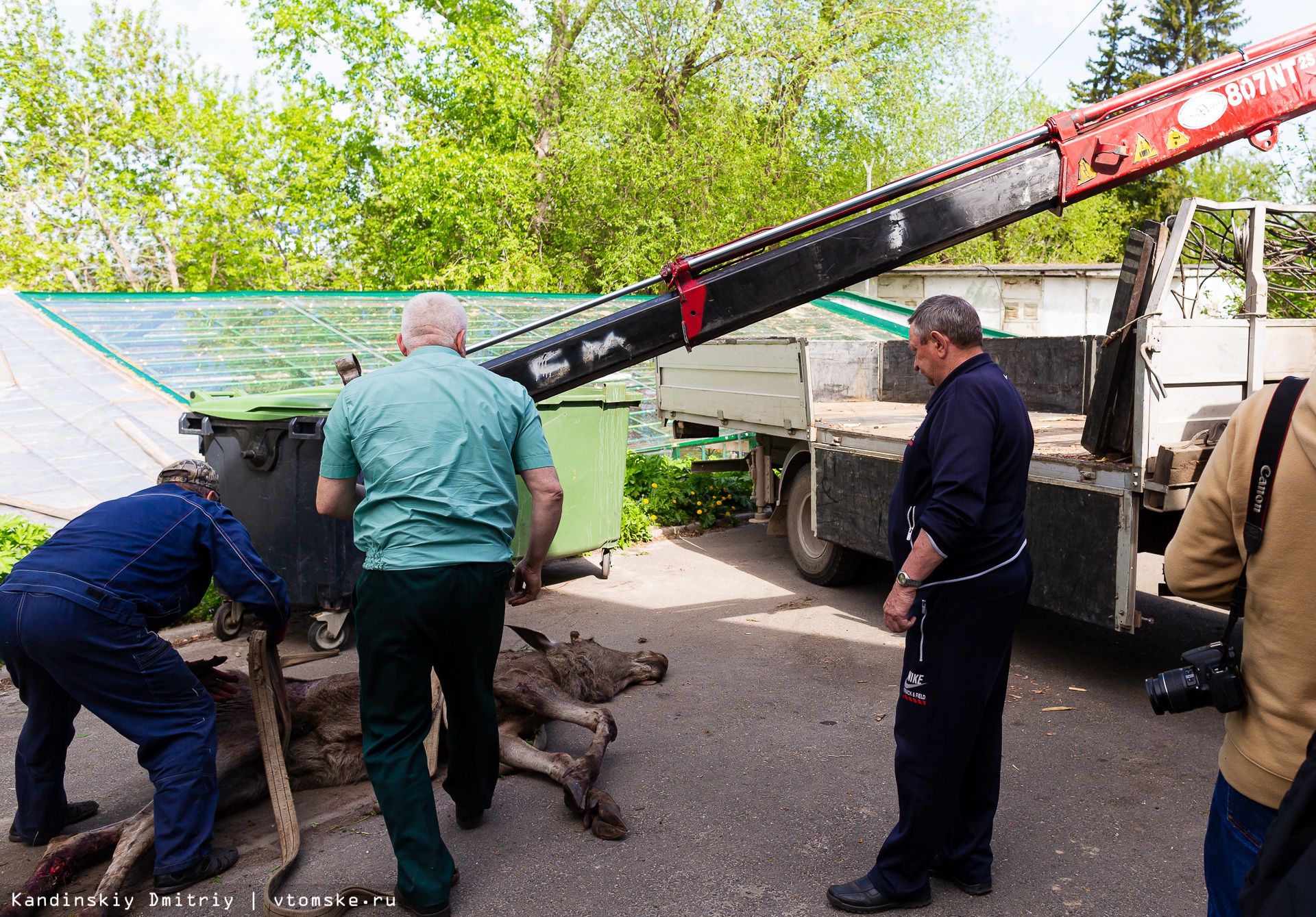 «Есть специально оборудованное место, которое находится в Поросино. Лося увезут туда и утилизируют», — сказал Даниленко, добавив, что вес животного — около 150 килограммов.