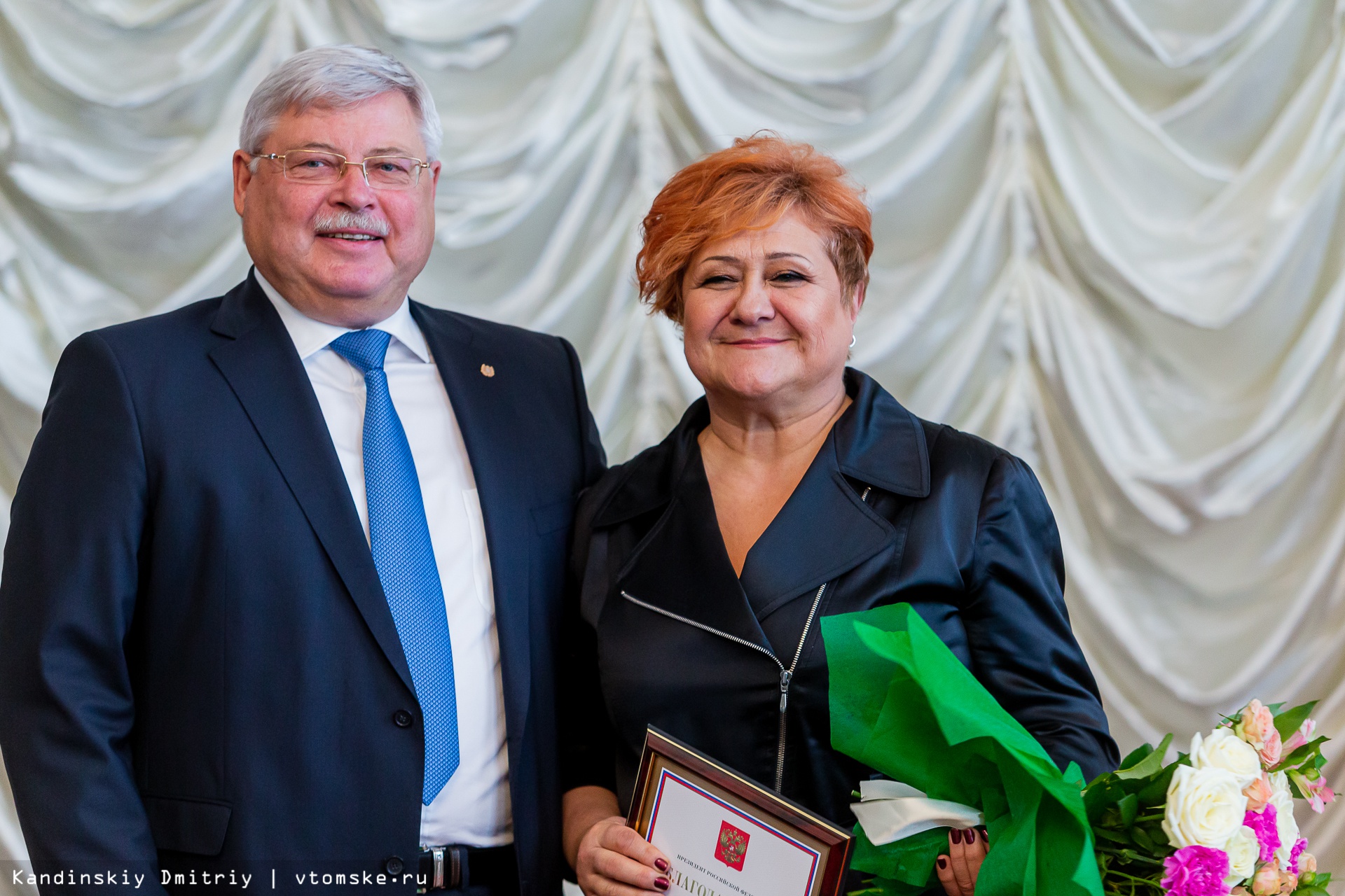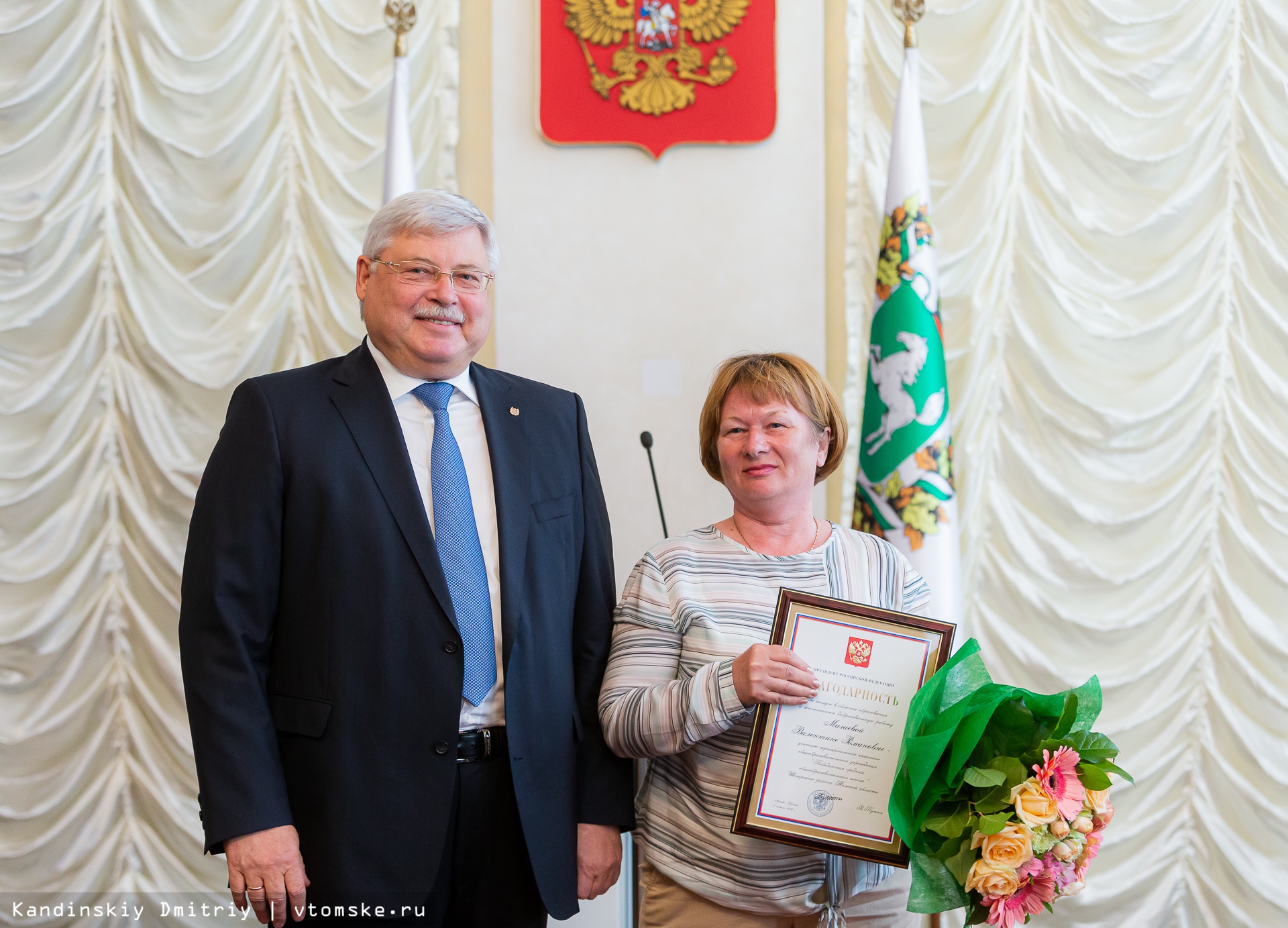 Почетное звание «Заслуженный работник транспорта РФ» присвоено Галине Абакумовой — водителю трамвая первого класса «Трамвайно-троллейбусного управления». А благодарность президента получила Валентина Мазаева — учительрусского языка и литературы Побединской средней общеобразовательной школы Шегарского района.