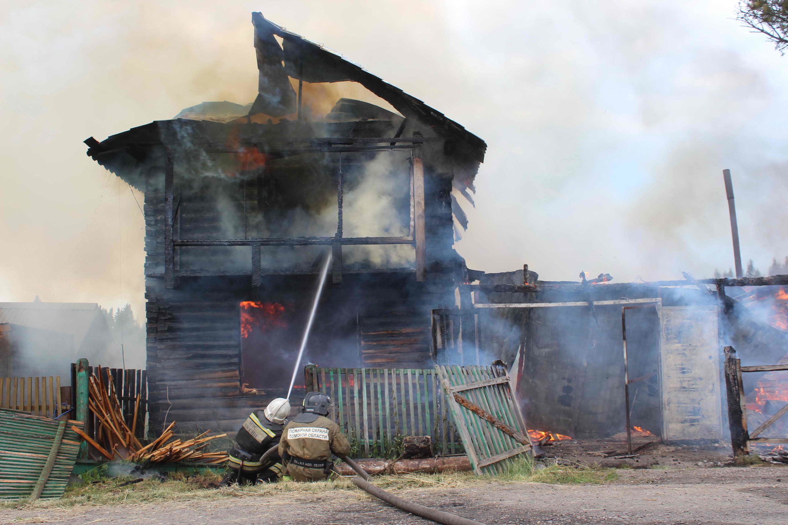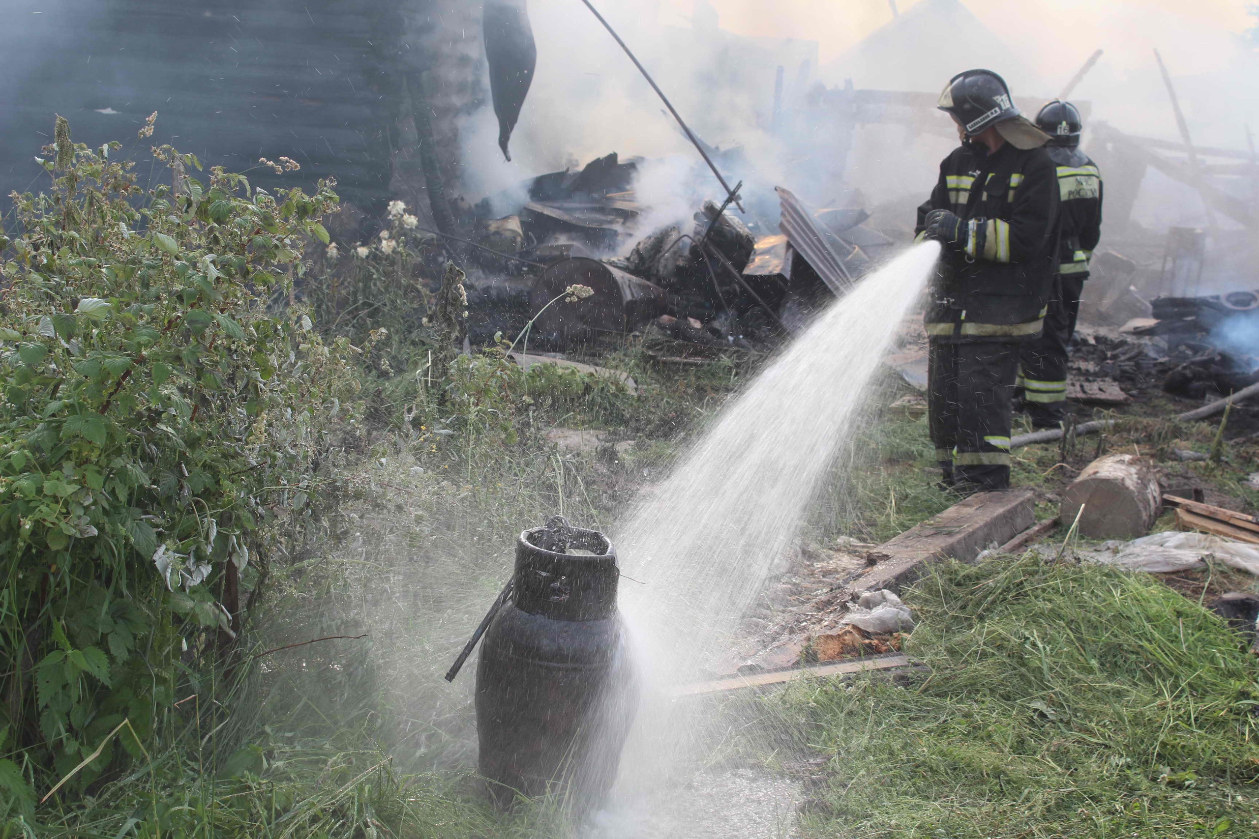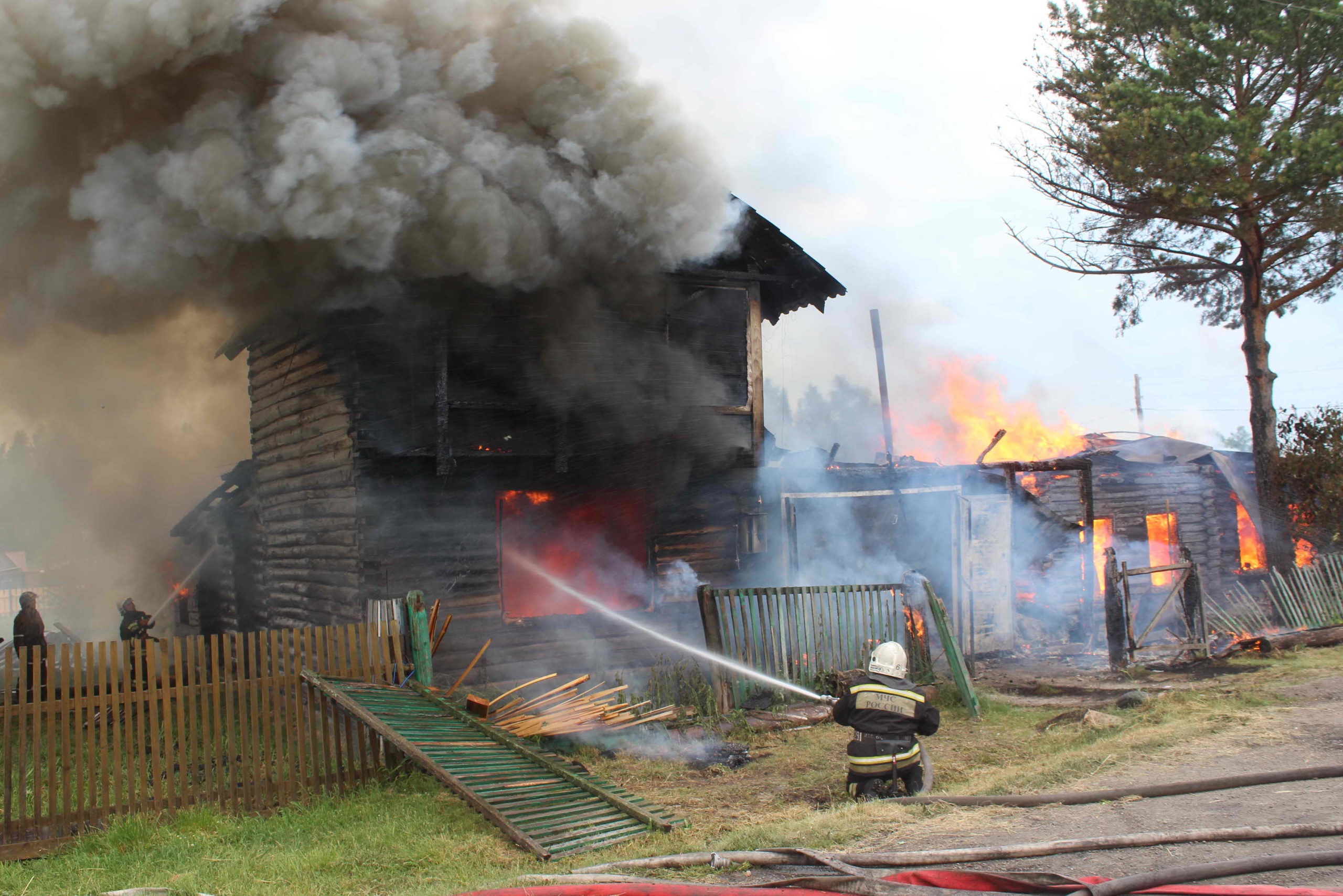 Одноэтажный бревенчатый дом загорелся к вечеру четверга, 4 июля, в Малиновке Томского района, огонь перешел на соседний двухэтажный дом. От огня строения пострадали сильно, в ходе тушения пожарные вынесли десять газовых баллонов.
