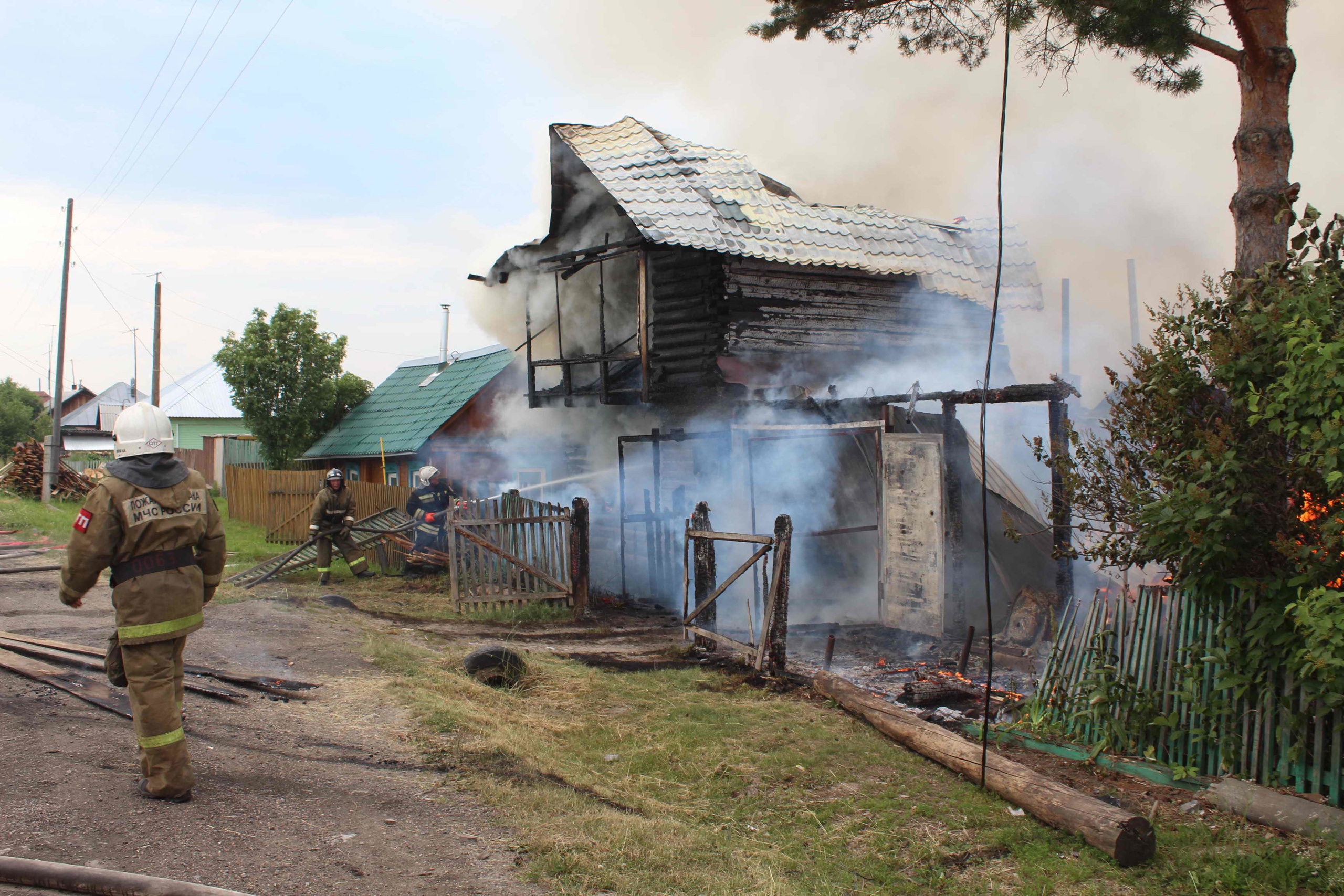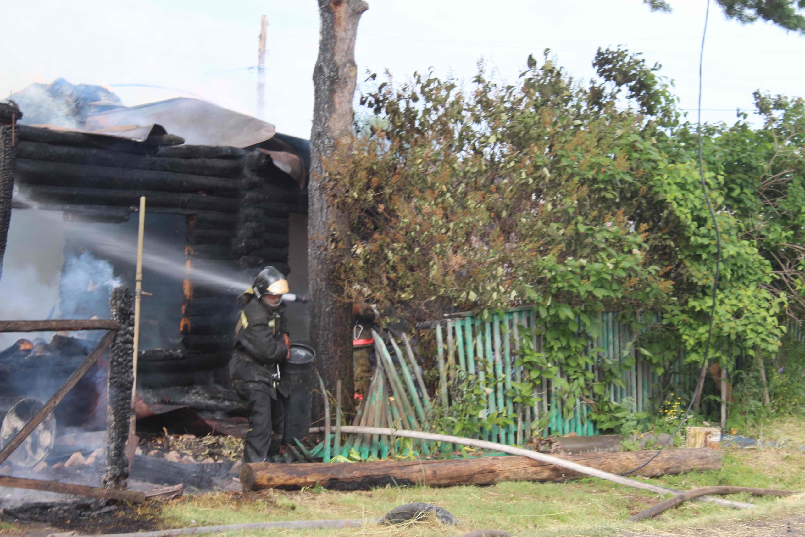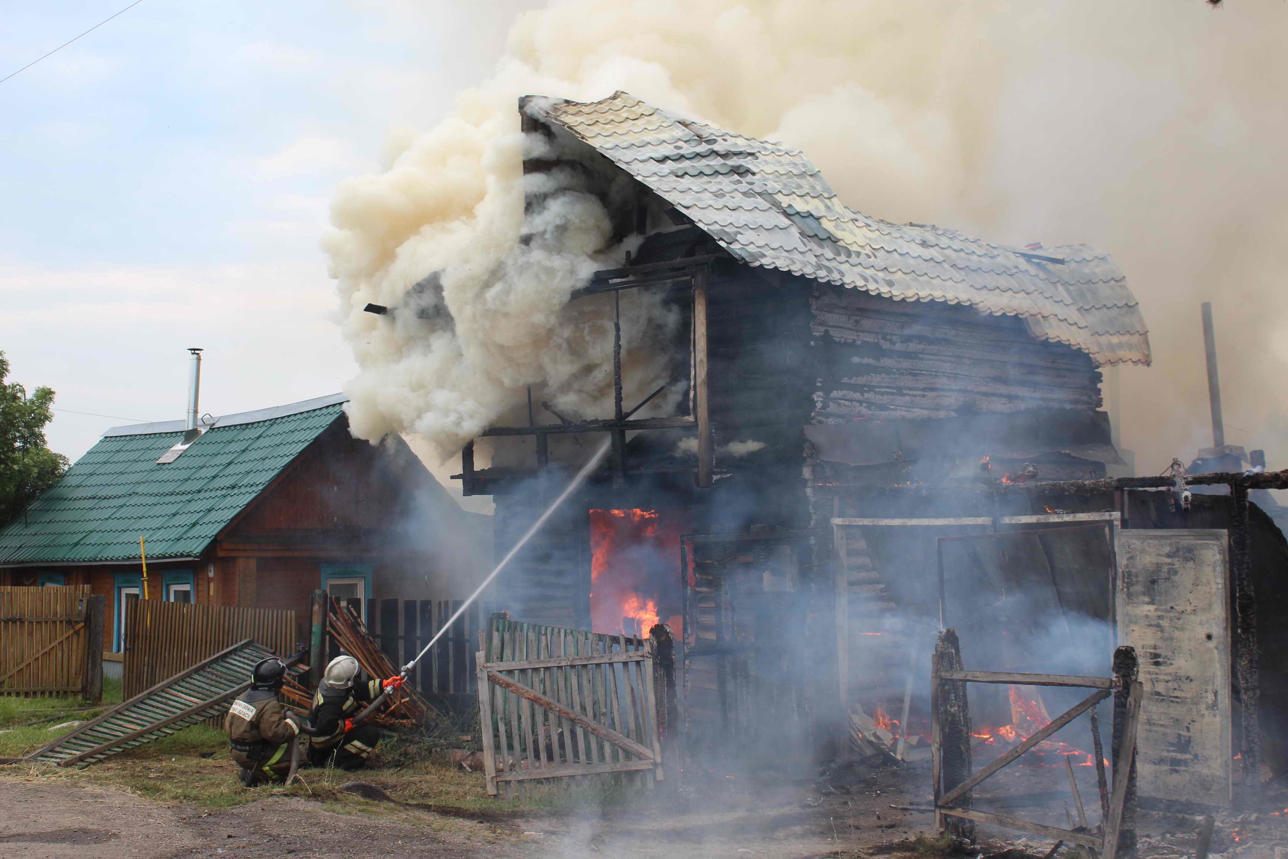Одноэтажный бревенчатый дом загорелся к вечеру четверга, 4 июля, в Малиновке Томского района, огонь перешел на соседний двухэтажный дом. От огня строения пострадали сильно, в ходе тушения пожарные вынесли десять газовых баллонов.