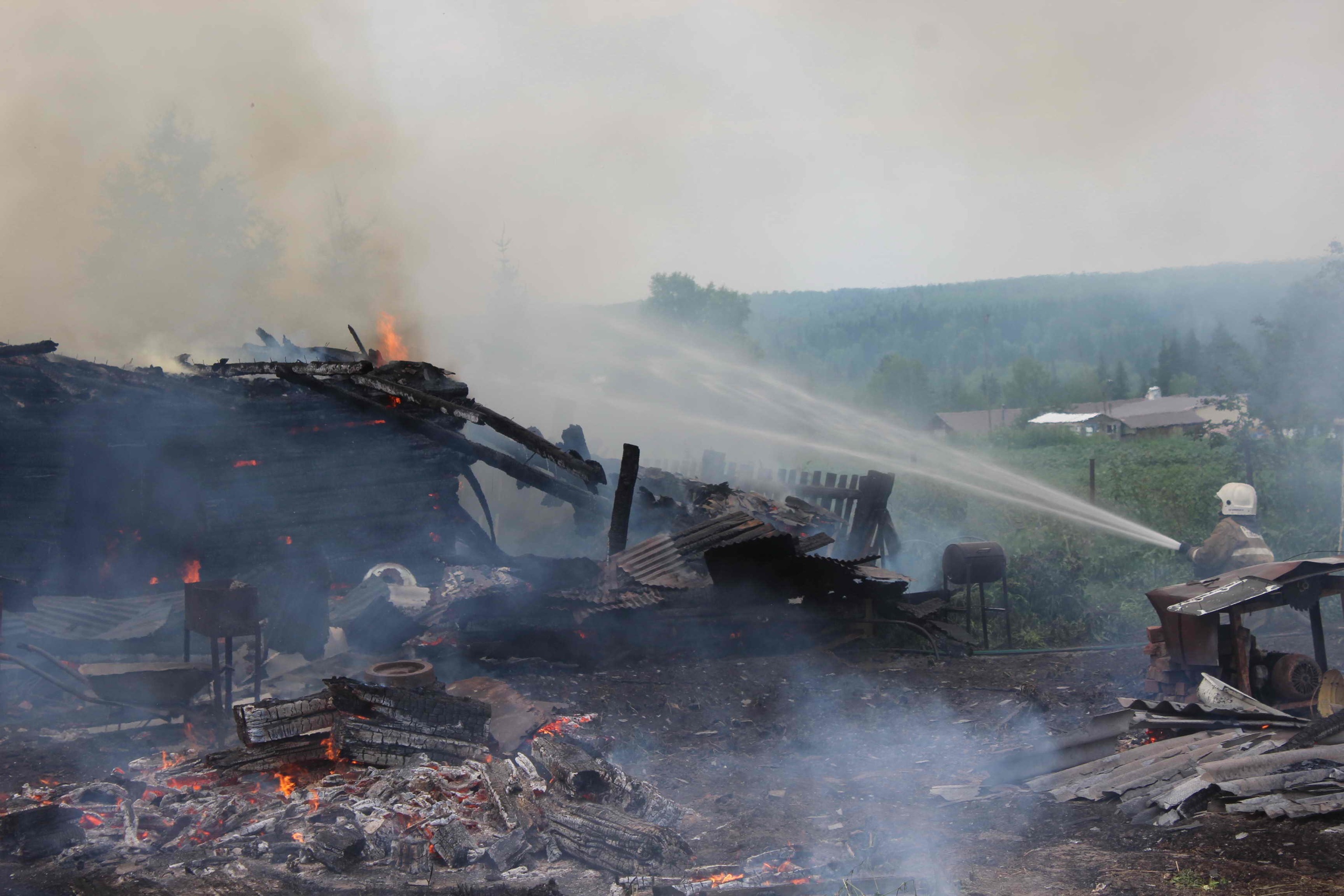 «На момент прибытия первого подразделения одноэтажный дом, надворные постройки и баня были полностью охвачены огнем, загорелся двухэтажный дом, огонь ушел под крышу. В результате сгорели крыши и потолочные перекрытия домов, надворных построек, бань, обгорели стены внутри и снаружи», — говорится в сообщении.