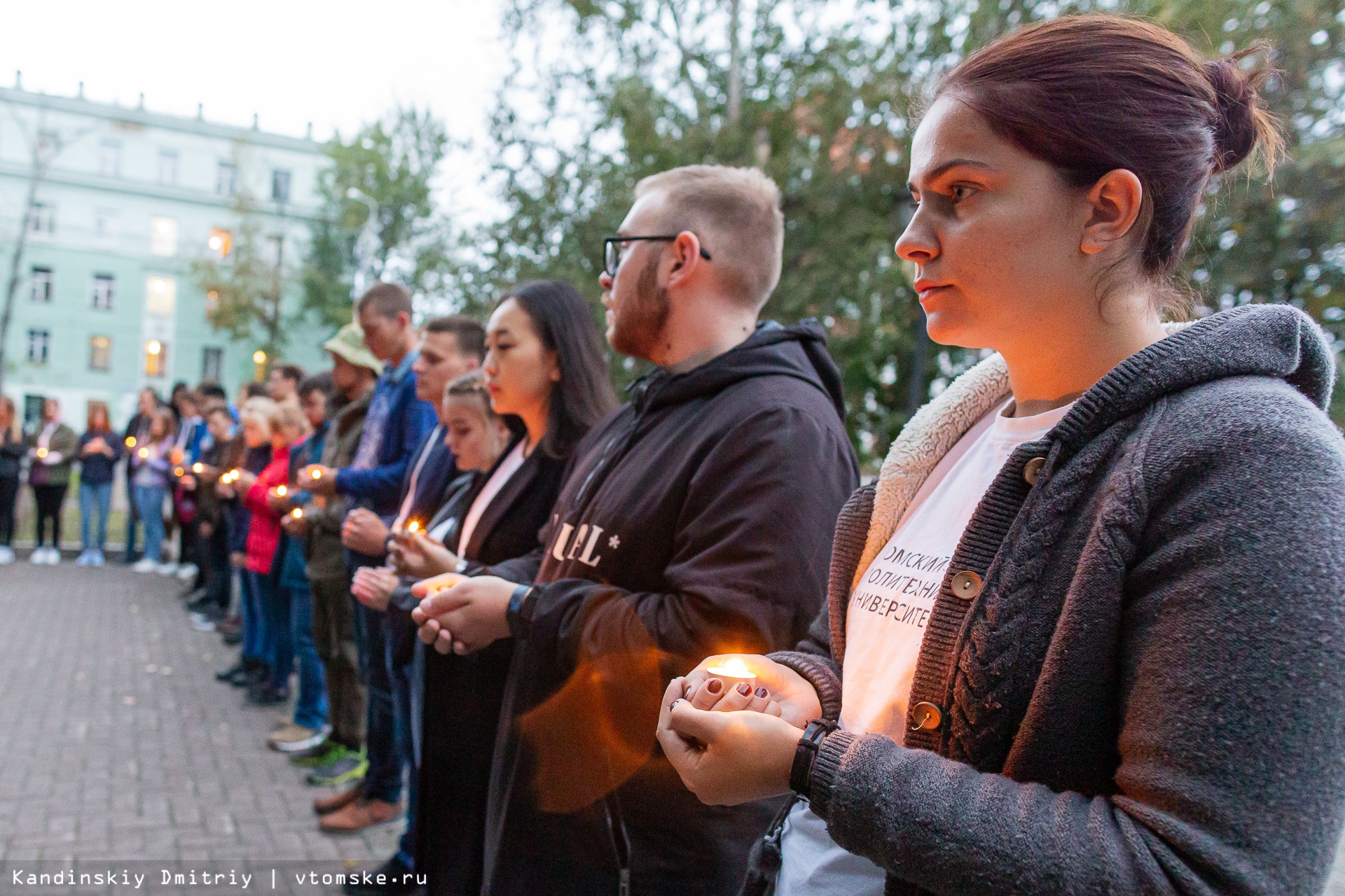 Памятная акция прошла в Томске вечером 3 сентября, в 15-летнюю годовщину теракта в школе Беслана. Студенты ТПУ зажгли свечи и почтили память погибших минутой молчания, сообщает корреспондент vtomske.ru.
