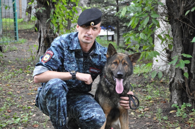 Старший инспектор-кинолог Вадим Колесников и немецкая овчарка по кличке Арэс
