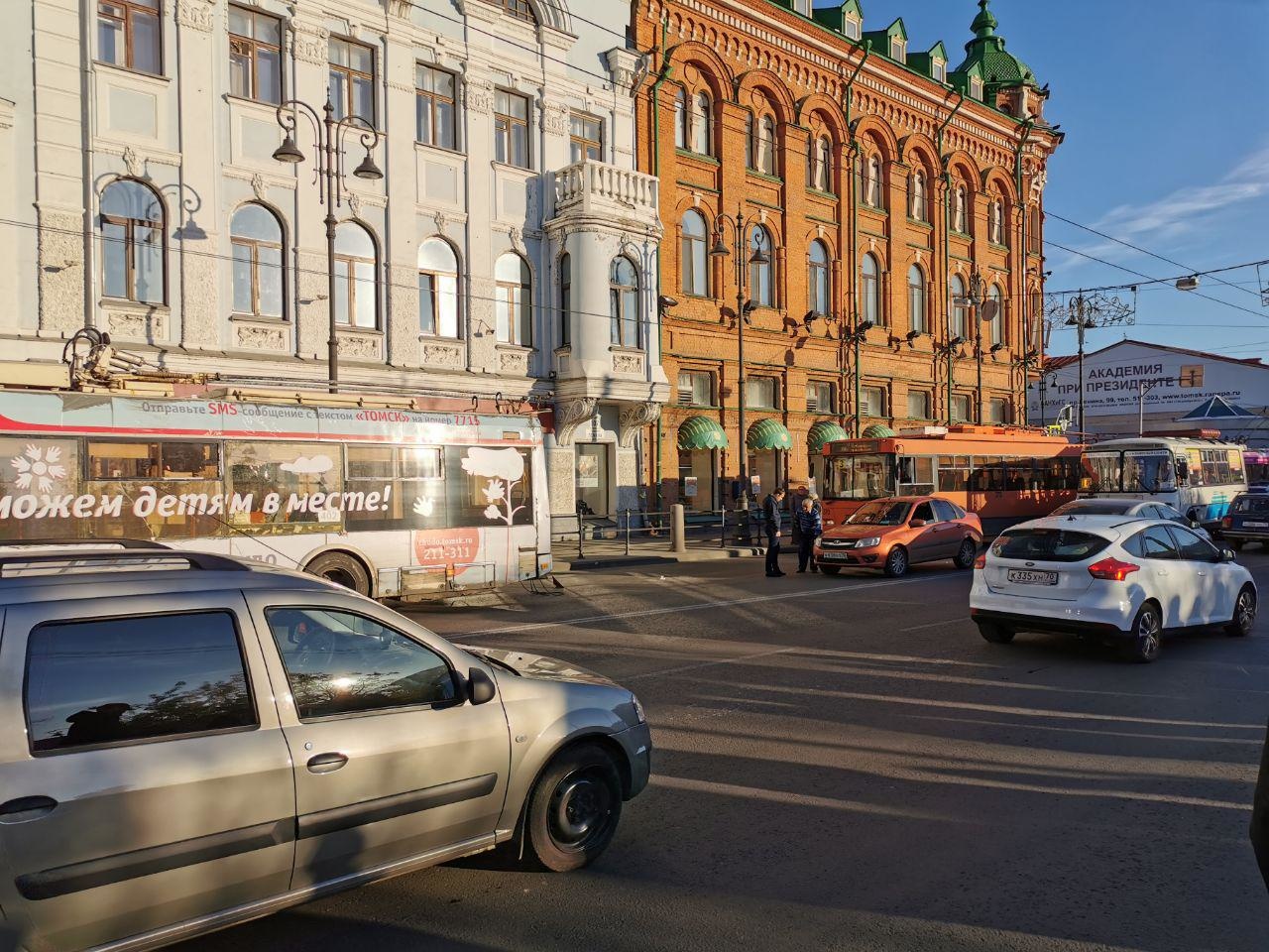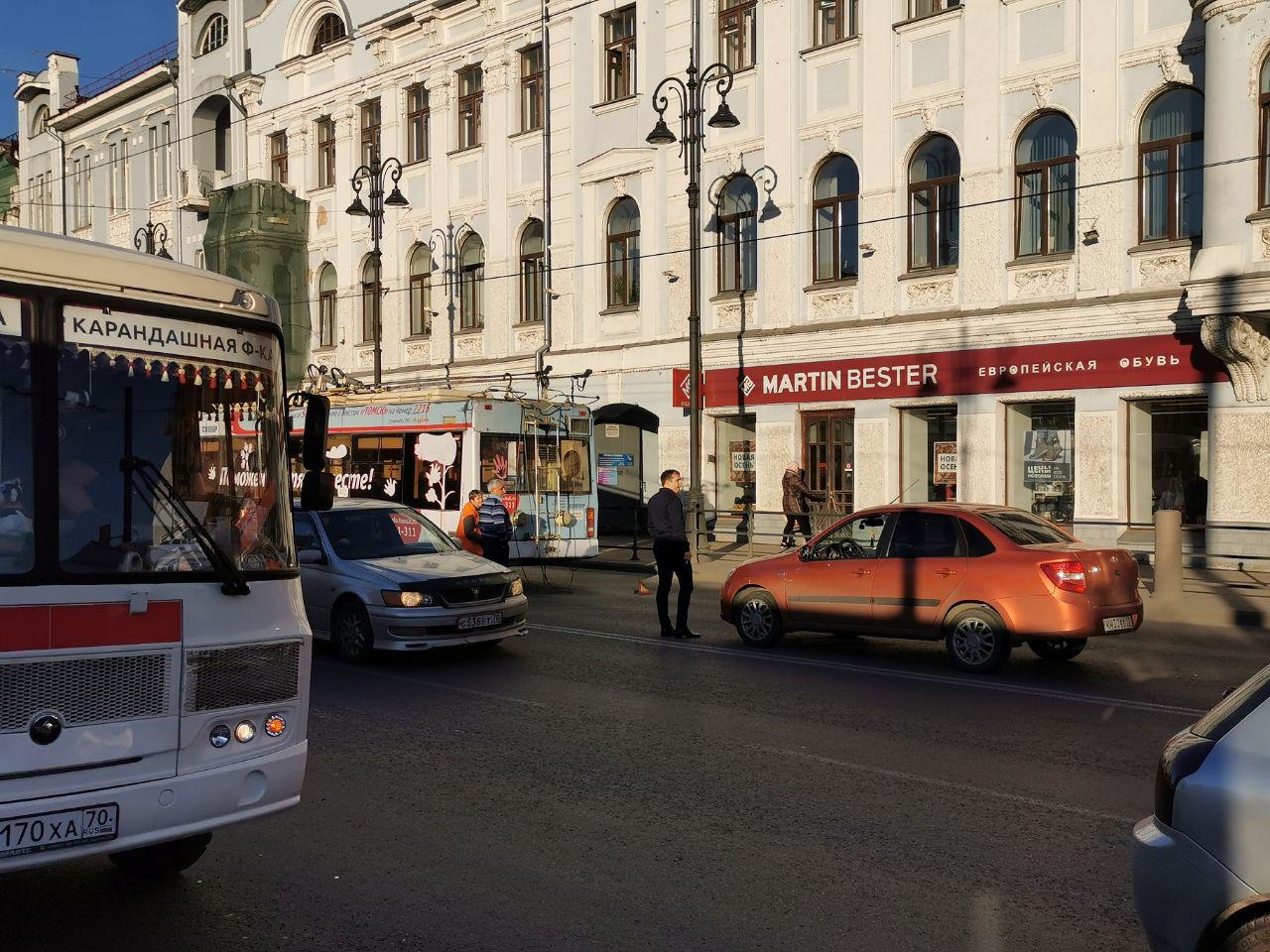 ДТП с троллейбусом спровоцировало длинную пробку в центре Томска