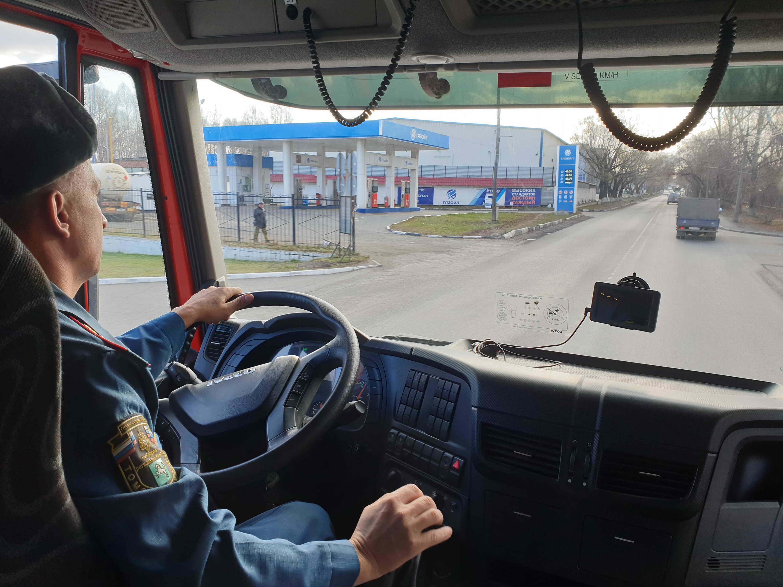 В течение часа пожарный автомобиль с включенными проблесковыми маячками и сиреной курсировал по городу. В кабине вместе с водителем автомобиля находился сотрудник дорожно-патрульной службы, который фиксировал происходящее на камеру. За автоцистерной следовали несколько экипажей ГИБДД.
