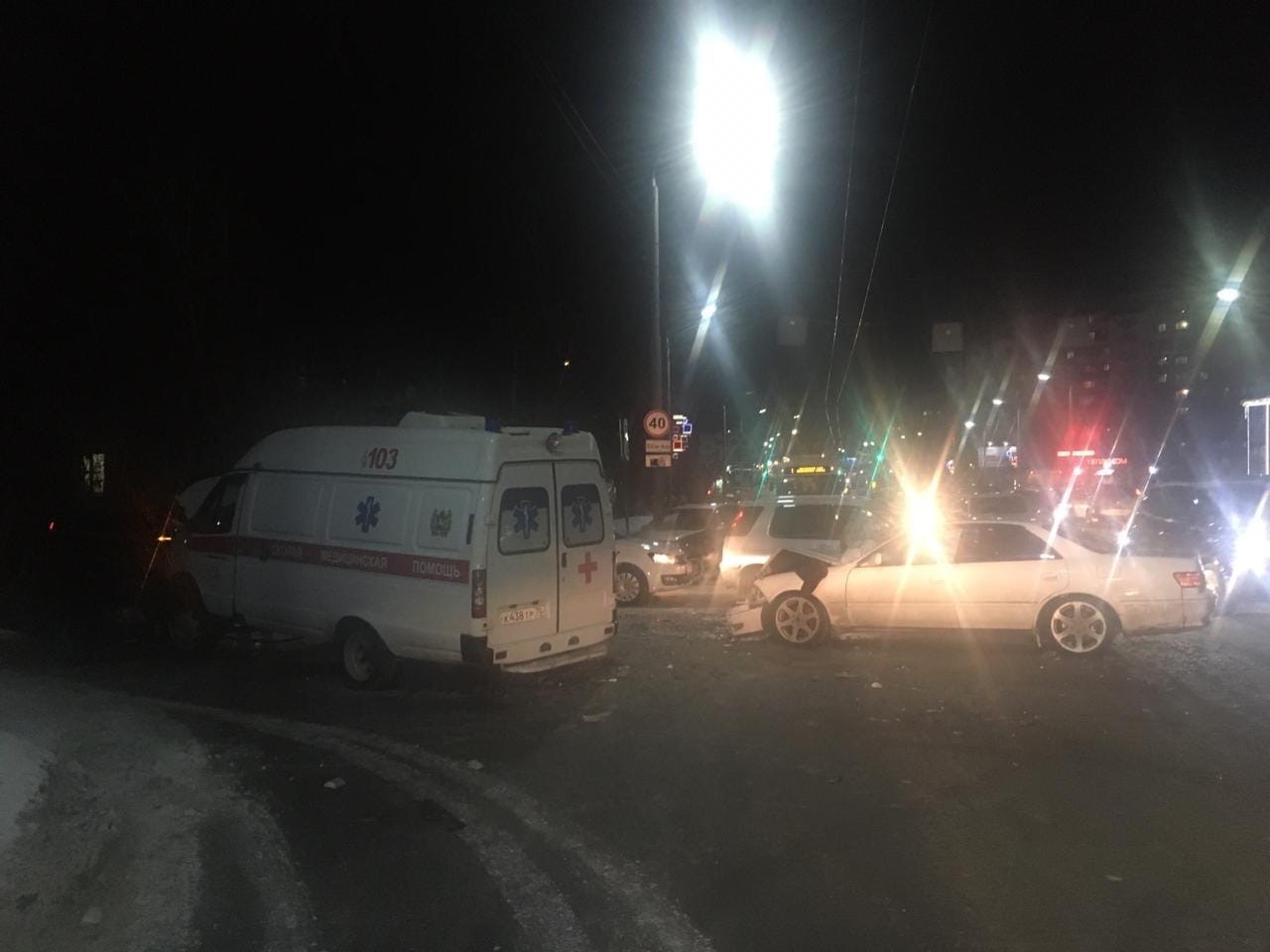 Водитель автомобиля скорой медицинской помощи вечером 18 декабря пересек двойную сплошную линию, после чего столкнулся с Toyota и совершил наезд на ВАЗ. В результате мужчина получил травмы.