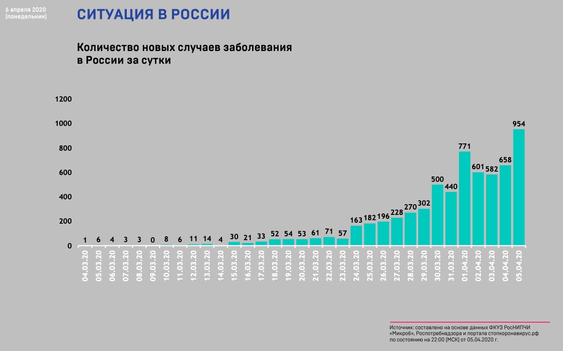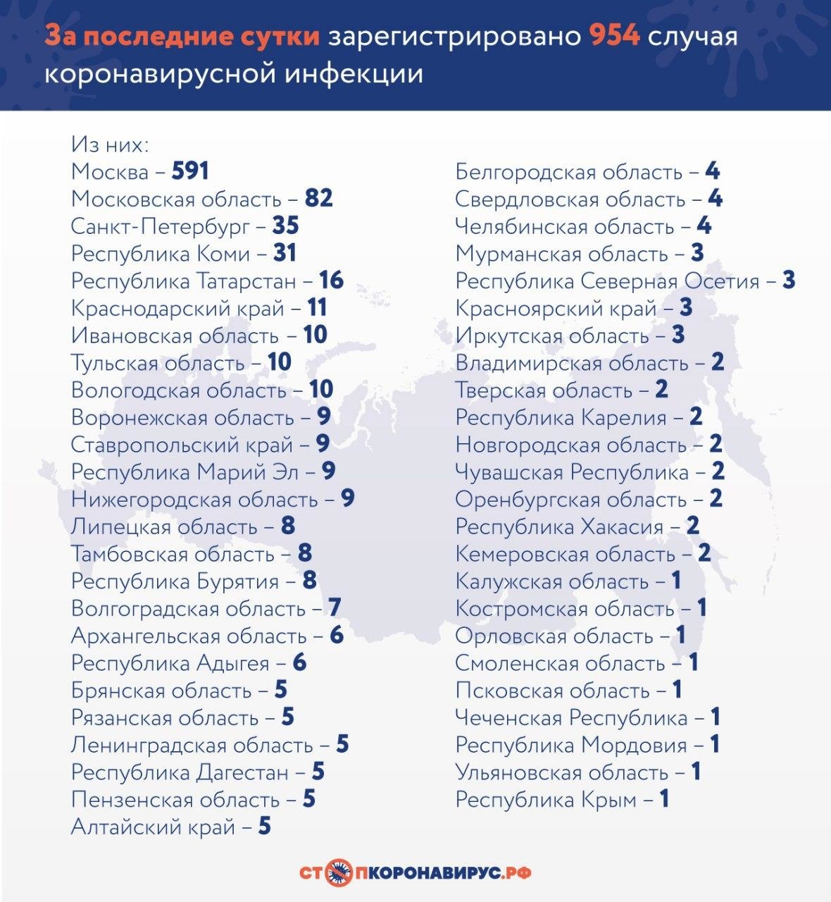 На данный момент 954 новых случая заболевания за сутки является самым большим в России.