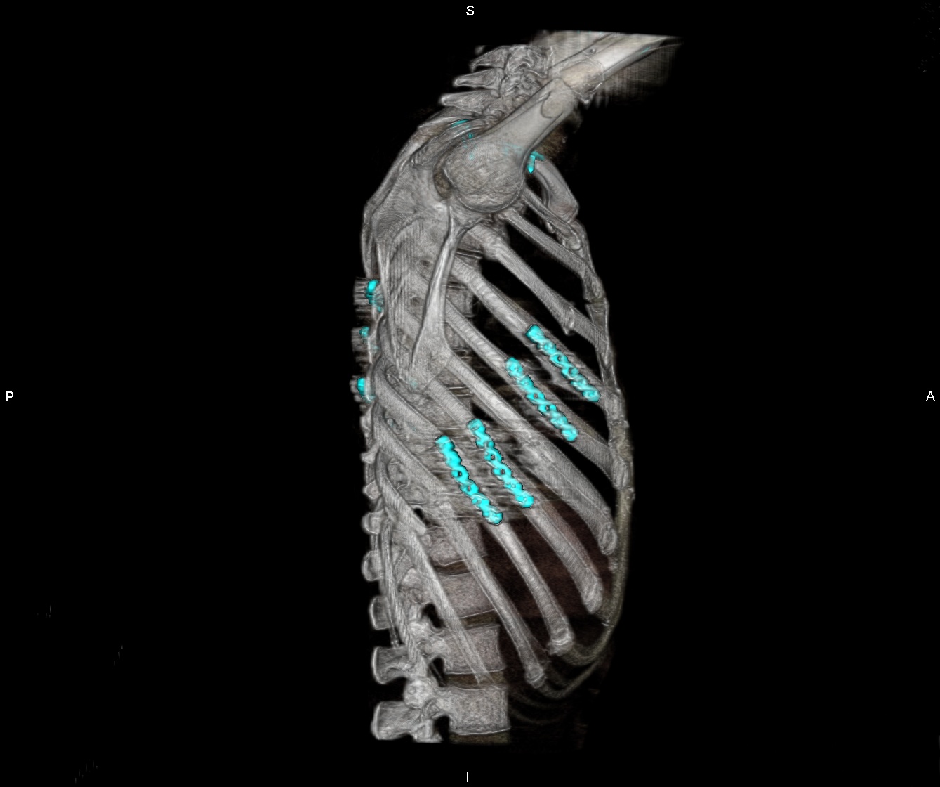 «Для восстановления реберного каркаса и самостоятельного дыхания, а также для снижения развития серьезных респираторных осложнений было принято решение выполнить операцию — остеосинтез ребер пластинами», — рассказал врач.