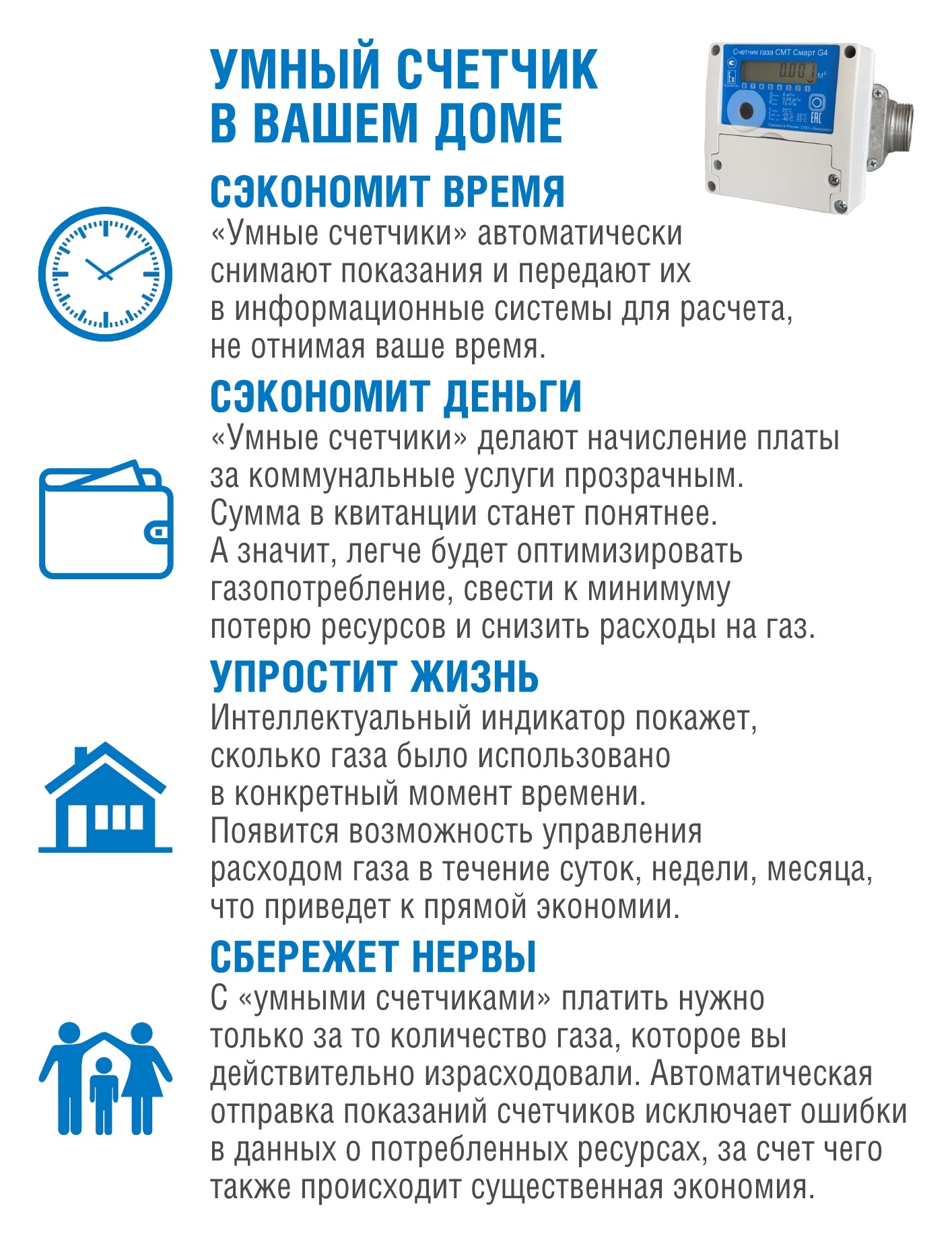 Все больше потребителей пользуются личным кабинетом, электронными платежами, и для облегчения этого процесса необходим онлайн-учет. «Умный» или «интеллектуальный» счетчик газа — это электронное устройство, которое регистрирует потребление газа и передает в цифровой форме информацию поставщику ресурса для мониторинга и выставления счетов.
