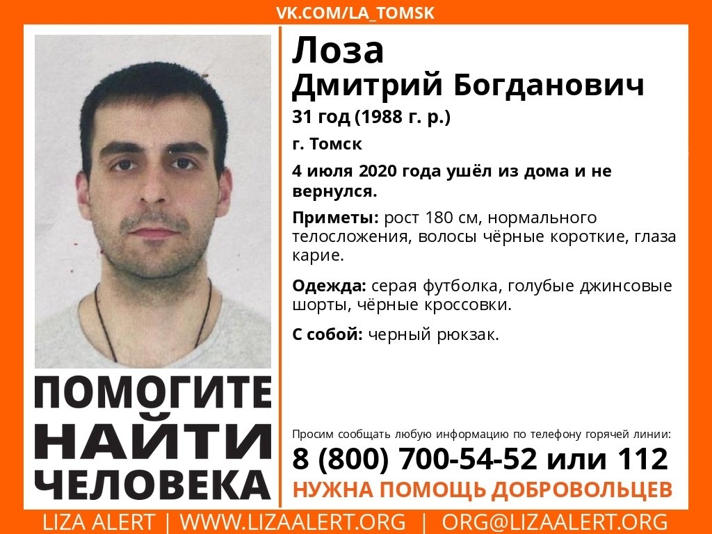 «Томск, внимание! Помогите найти человека! Пропал Лоза Дмитрий Богданович, 31 год», — сообщается на странице отряда в соцсети «ВКонтакте».