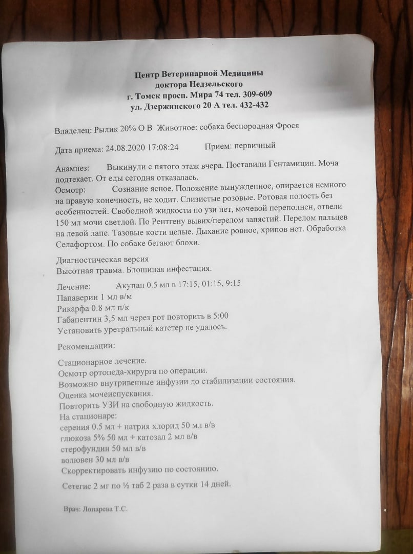Пока томичка оплатила для собаки рентген, УЗИ, осмотр и внесла предоплату за стационар — около пяти тысяч рублей. На операцию и несколько дней стационара необходимо около 42 тысяч.