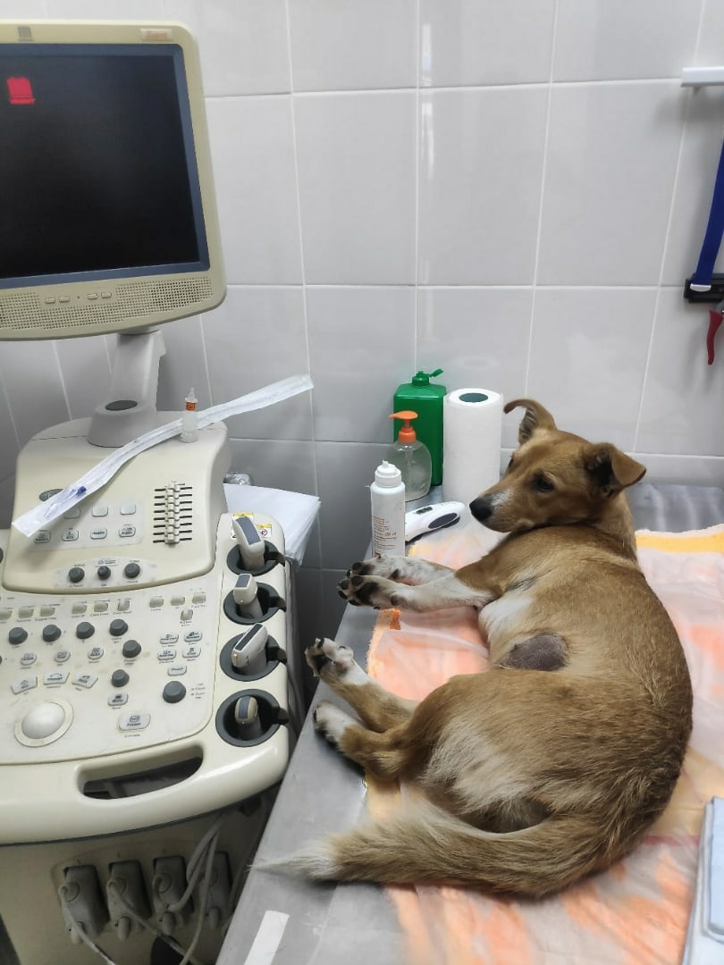 Собака оставлена в клинике на стационар. Через несколько дней после стабилизации ей будет проведена операция.
