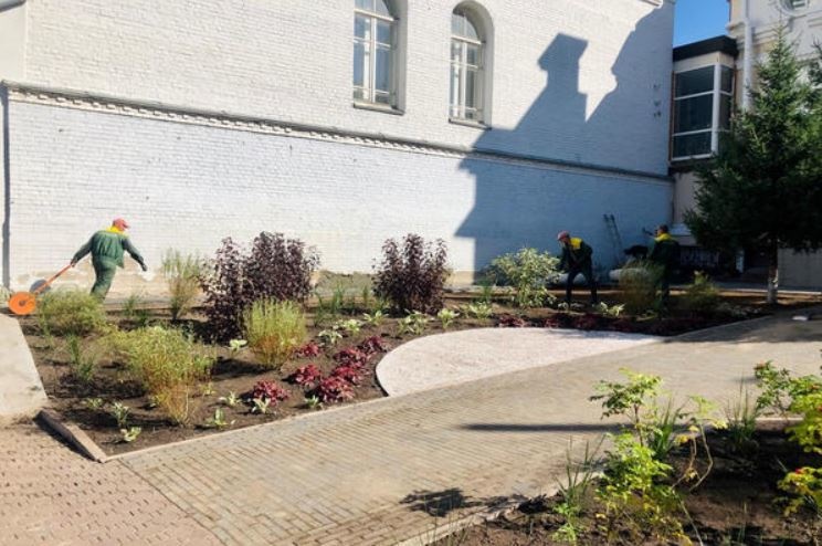 Саженцы спиреи, ивы и хосты высадили в Пушкинском сквере Томска