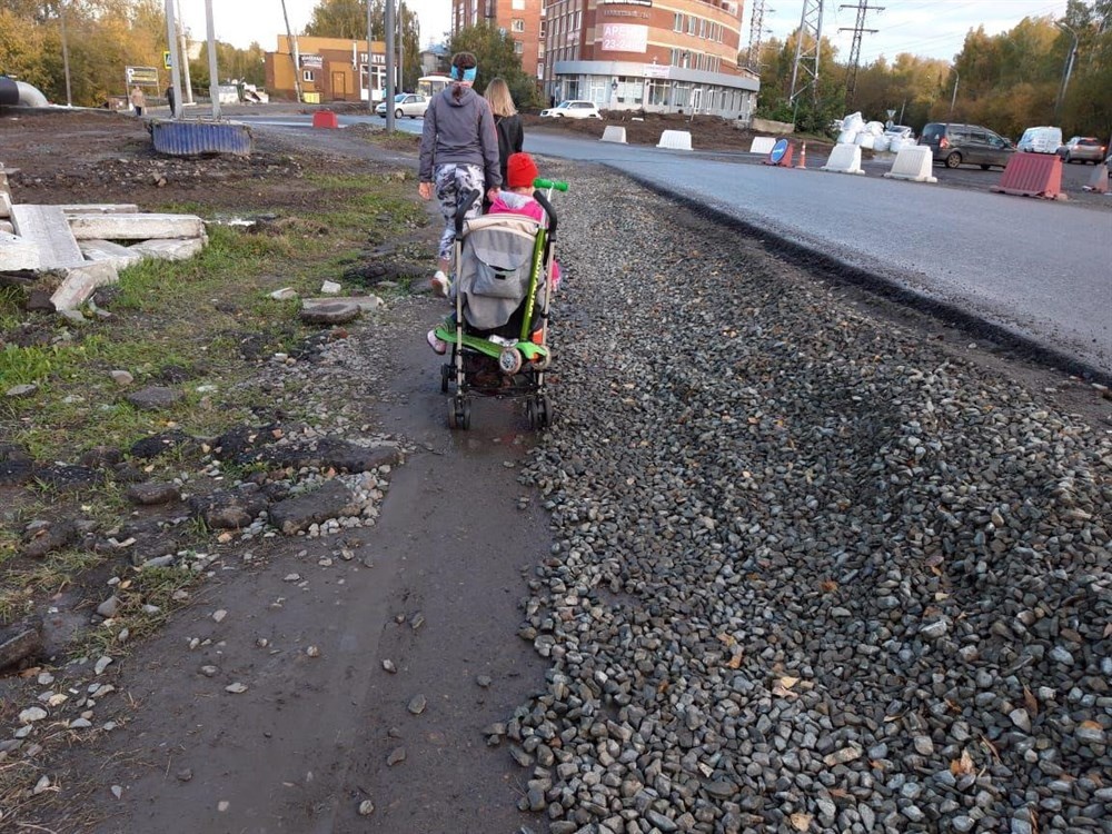 Томичи жалуются и на отсутствие тротуаров и пешеходных дорожек на мокрушинском переезде, который ремонтируют в рамках строительства транспортной развязки с железной дорогой Тайга — Томск.