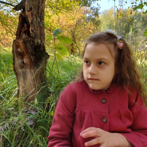 Ребенок учится на семейном образовании во втором классе. С 2020 года занимается в центре развития «Умничка». Девочка учится общаться через карточки, печатать на клавиатуре.