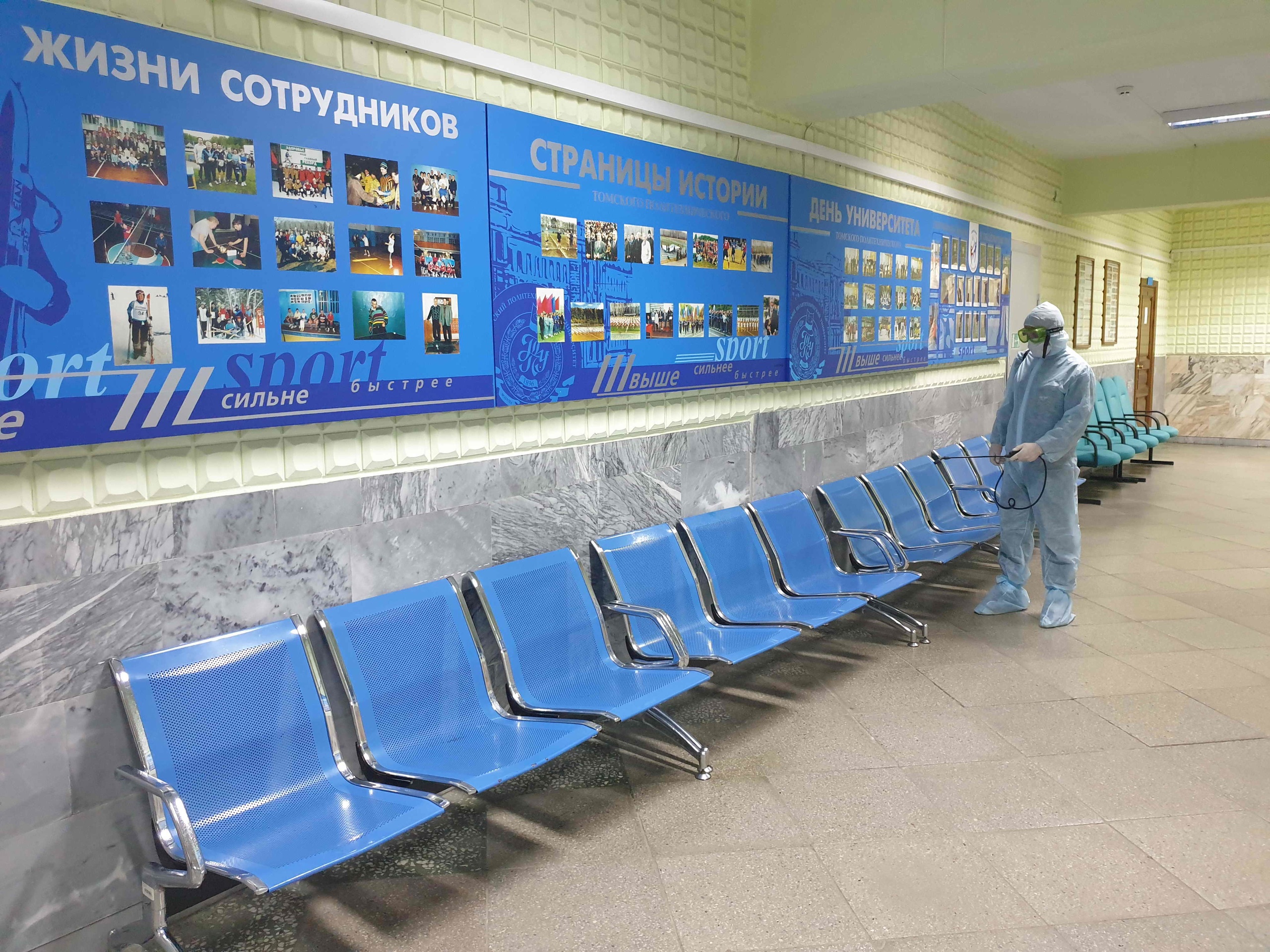 Сотрудники МЧС провели дезинфекцию спорткорпуса ТПУ