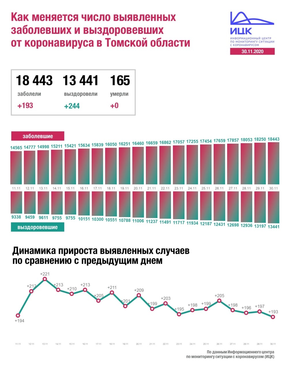 За последние сутки коронавирусную инфекцию SARS-CoV-2 в Томской области подтвердили у 193 человек. Общее число заболевших в регионе достигло 18 443.