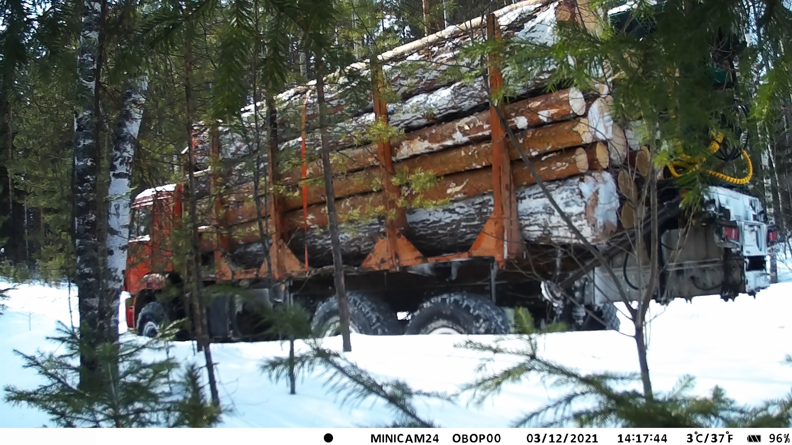 Чтобы найти «черных лесорубов», на месте незаконной рубки установили фотоловушку. С ее помощью удалось определить технику и регистрационные номера транспорта, при помощи которого заготавливали и перевозили древесину.