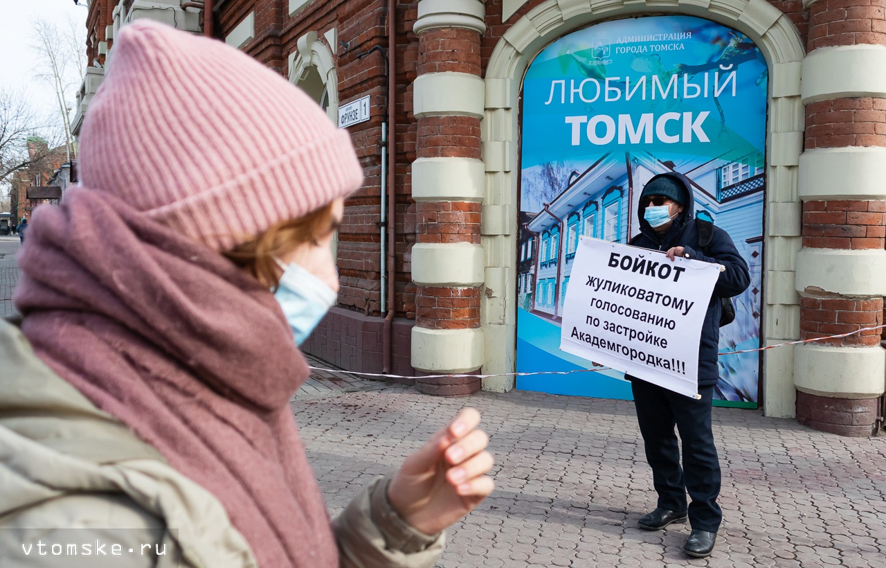 Житель микрорайона Наука вышел на одиночный пикет против создания новой территориальной зоны О-7 в квартале Академгородка, где находятся НИИ. По словам томича, новая зона нужна для того, чтобы в будущем на соседней территории начать строительство жилья.
