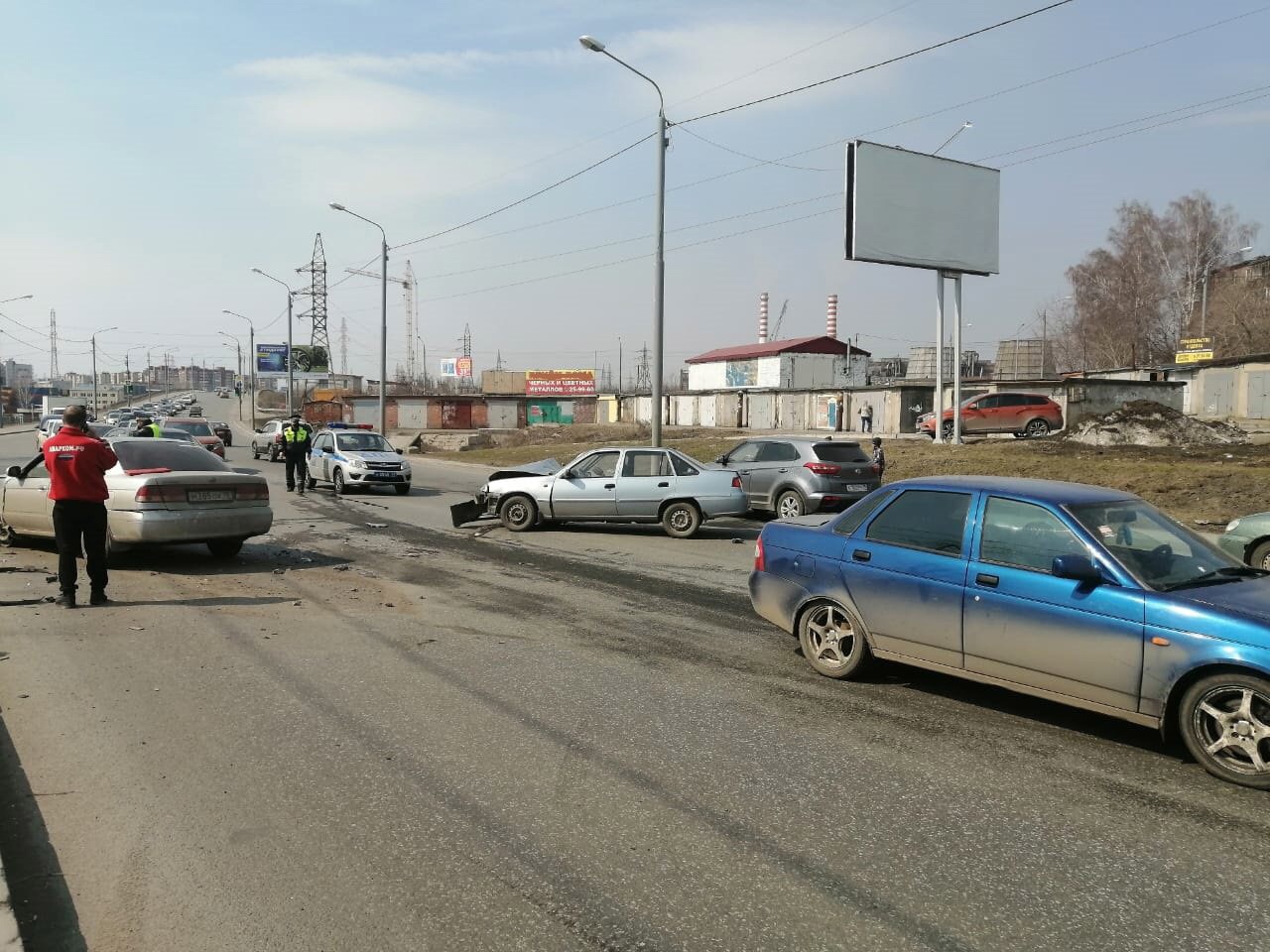 Четыре машины столкнулись на Елизаровых в Томске. Одна из них перевернулась