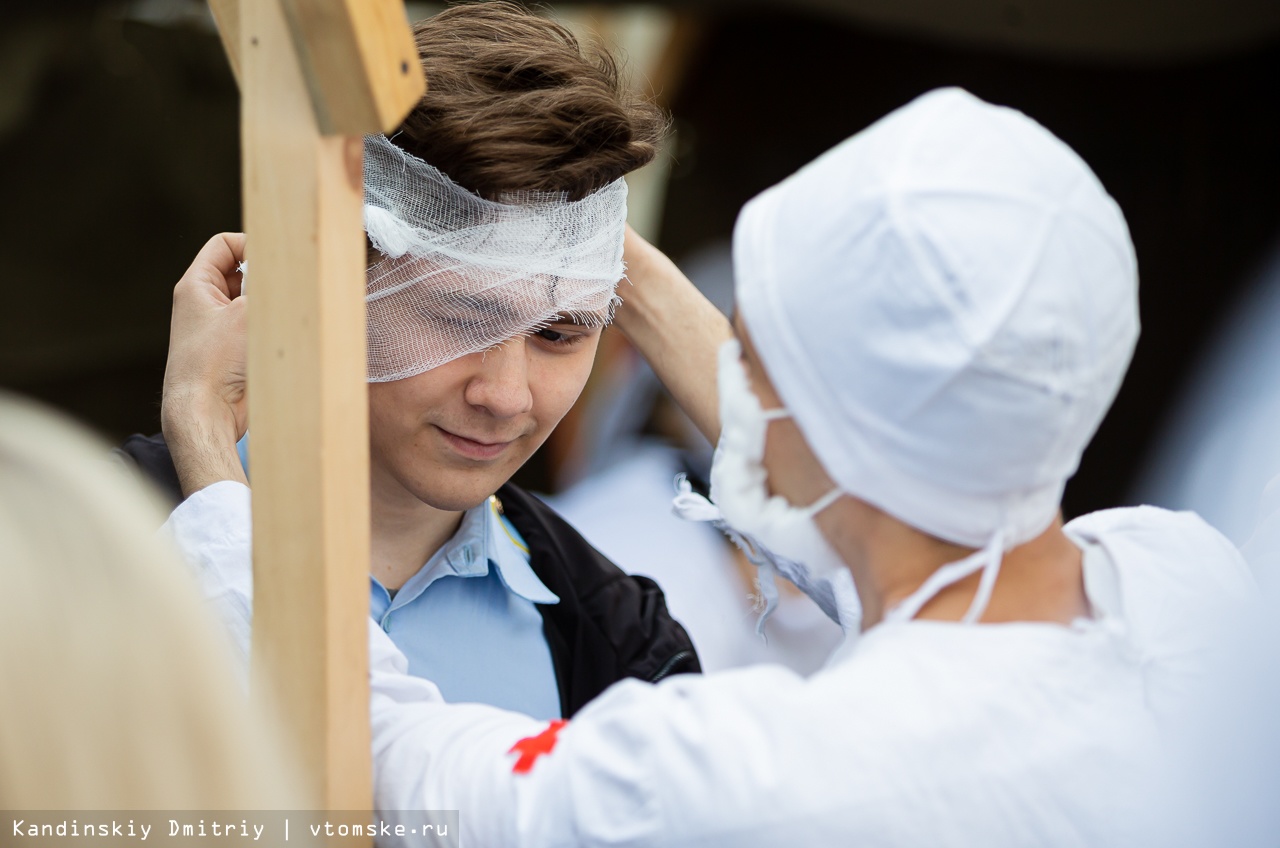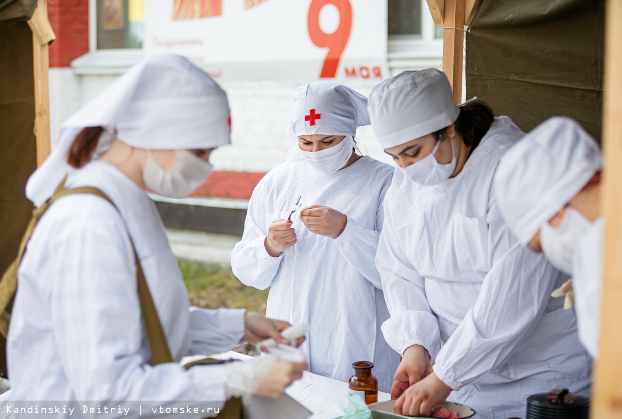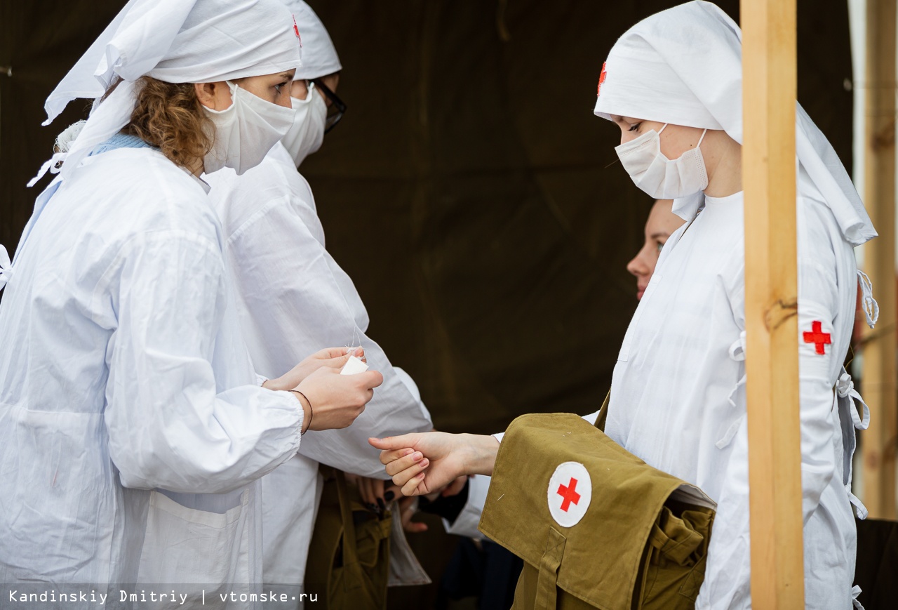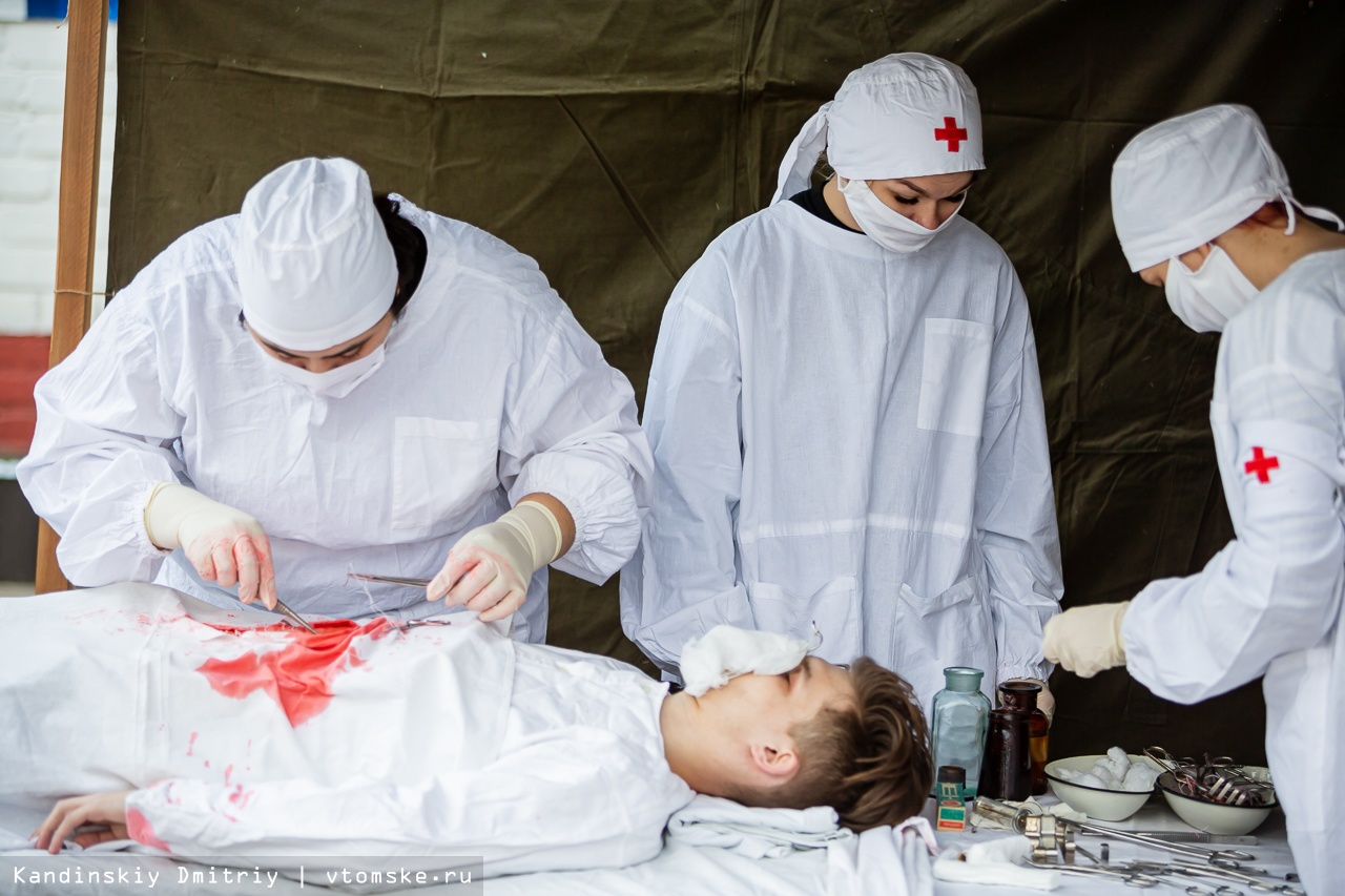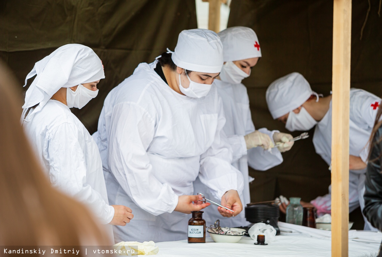Реконструкция полевого госпиталя времен Великой Отечественной войны развернулась на базе томского медицинского колледжа на улице Смирнова. Цель акции — показать, в каких условиях приходилось работать медикам в годы войны.